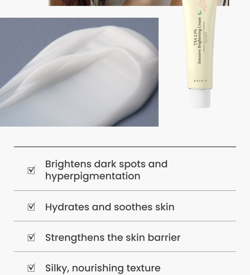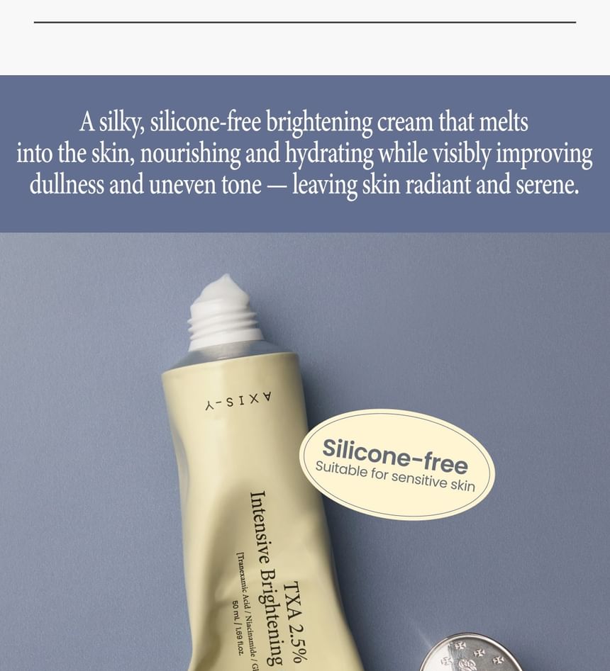 Radiant your Skin Care with the [AXIS-Y] TXA 2.5% Intensive Brightening Cream 50ml! we aim to provide you best korean products to take good care of your skin, including Skincare, Moisturizer, Cream. Hydra Cream online.