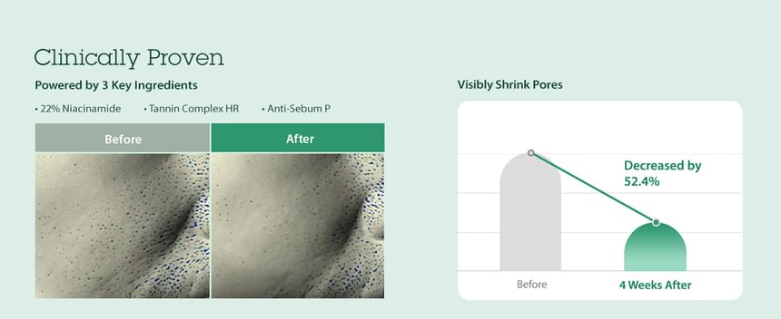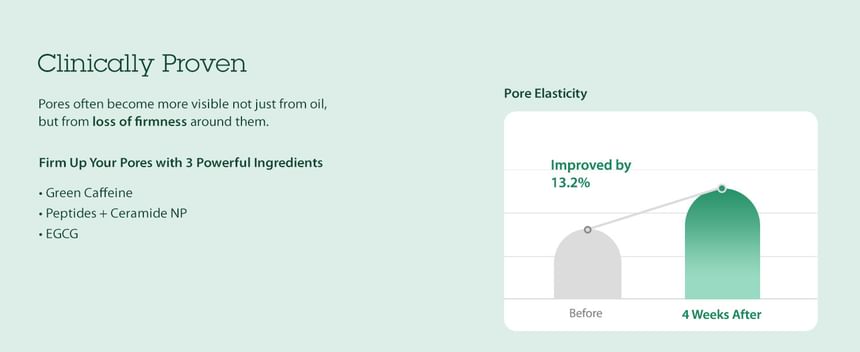 Clinically Proven Pore Care: Formulated with Tannin Complex HR and Anti-Sebum P to reduce pore appearance and control oil.