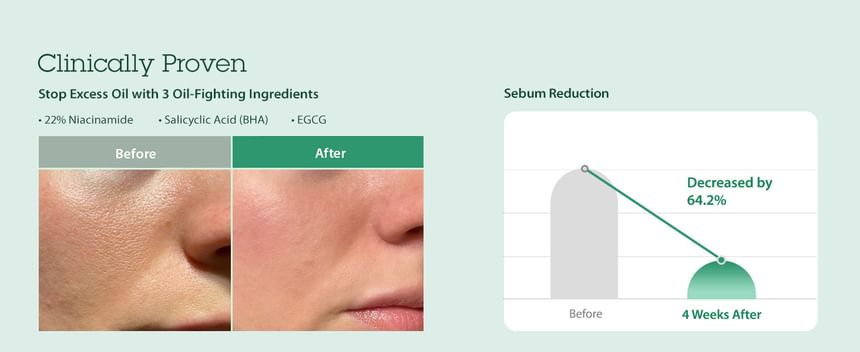 Contains Tannin Complex HR and Anti-Sebum P to help minimize pores, and Salicylic Acid (BHA) and EGCG to help reduce sebum.