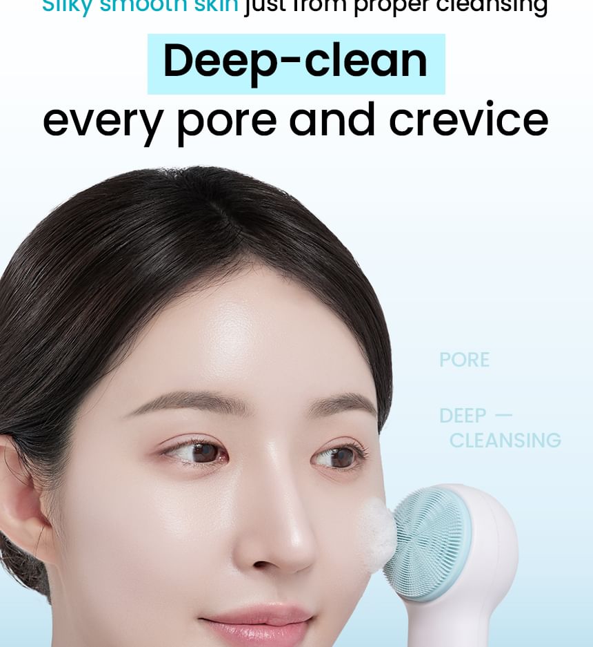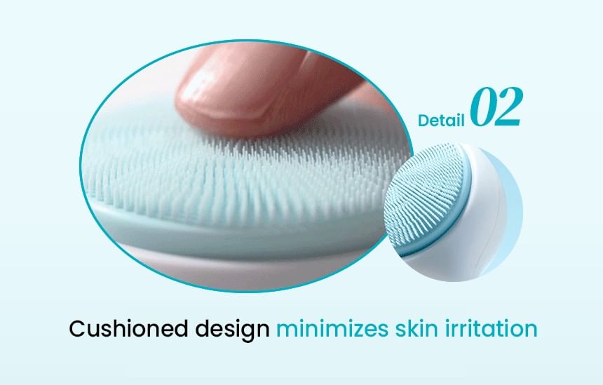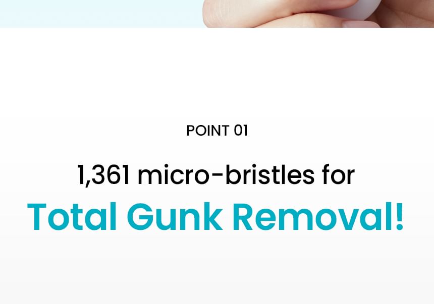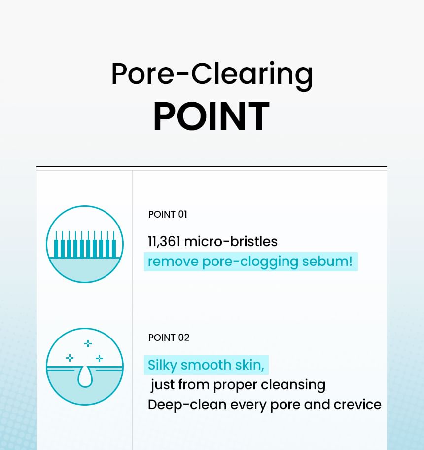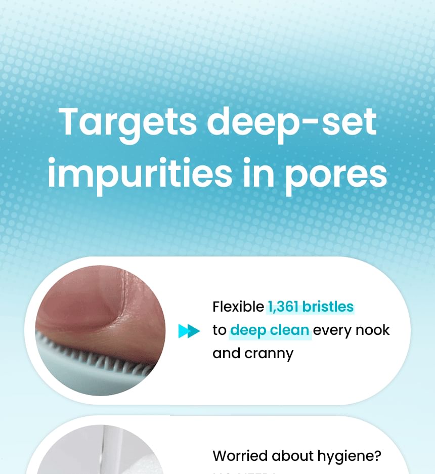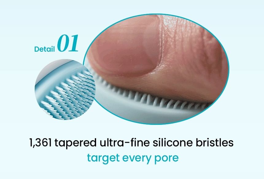 Ultra-fine silicone bristles target every pore for removing sebum, dead skin cells and wastes clogged inside pores thoroughly.