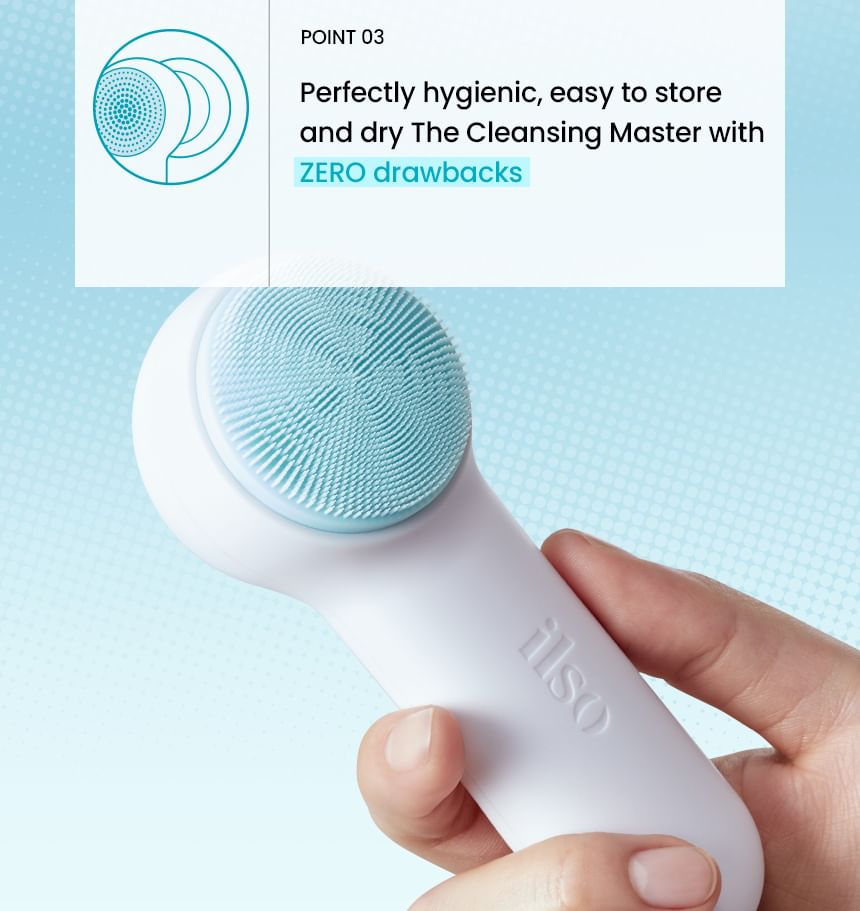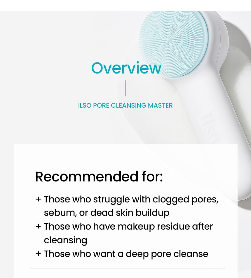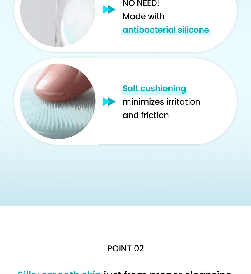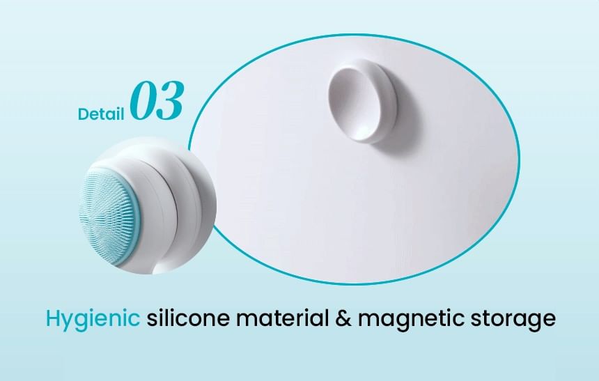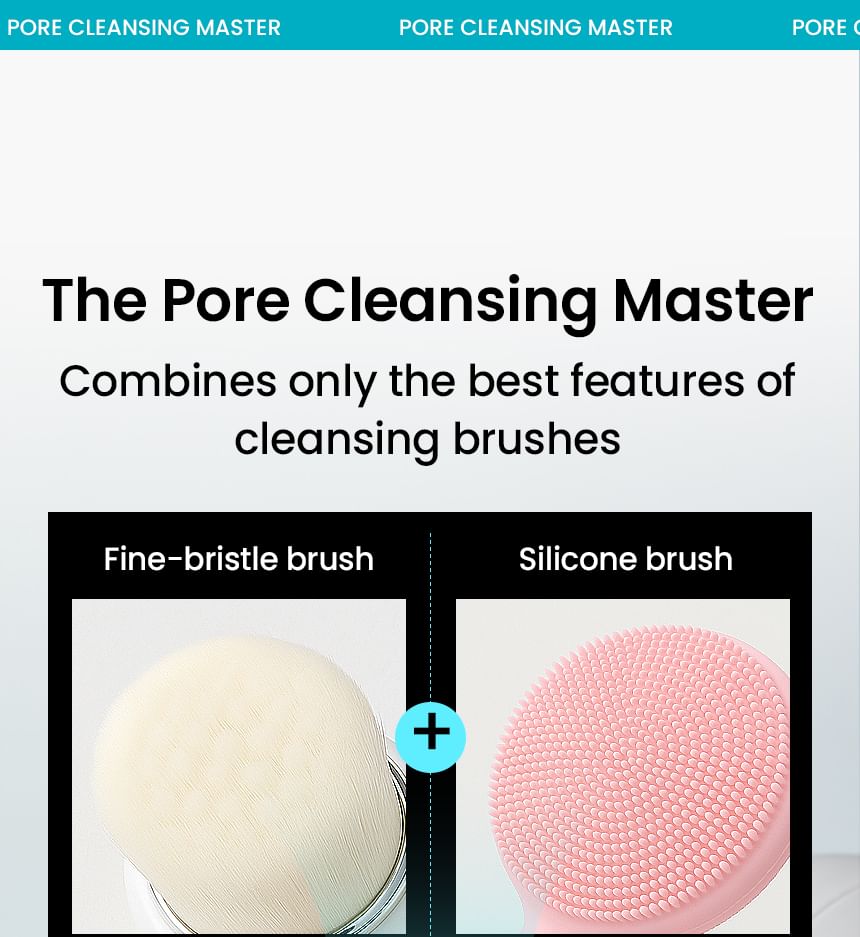 Ultra-fine silicone bristles target every pore for removing sebum, dead skin cells and wastes clogged inside pores thoroughly.