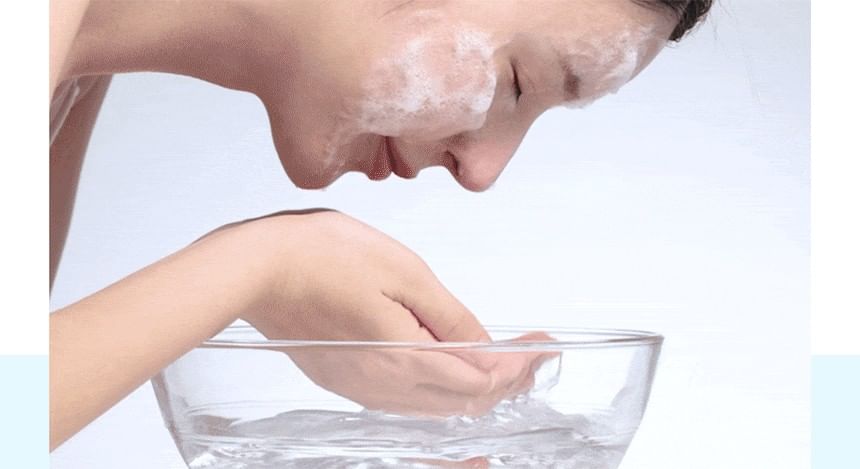 2. Rinse your face and the brush thoroughly with water.