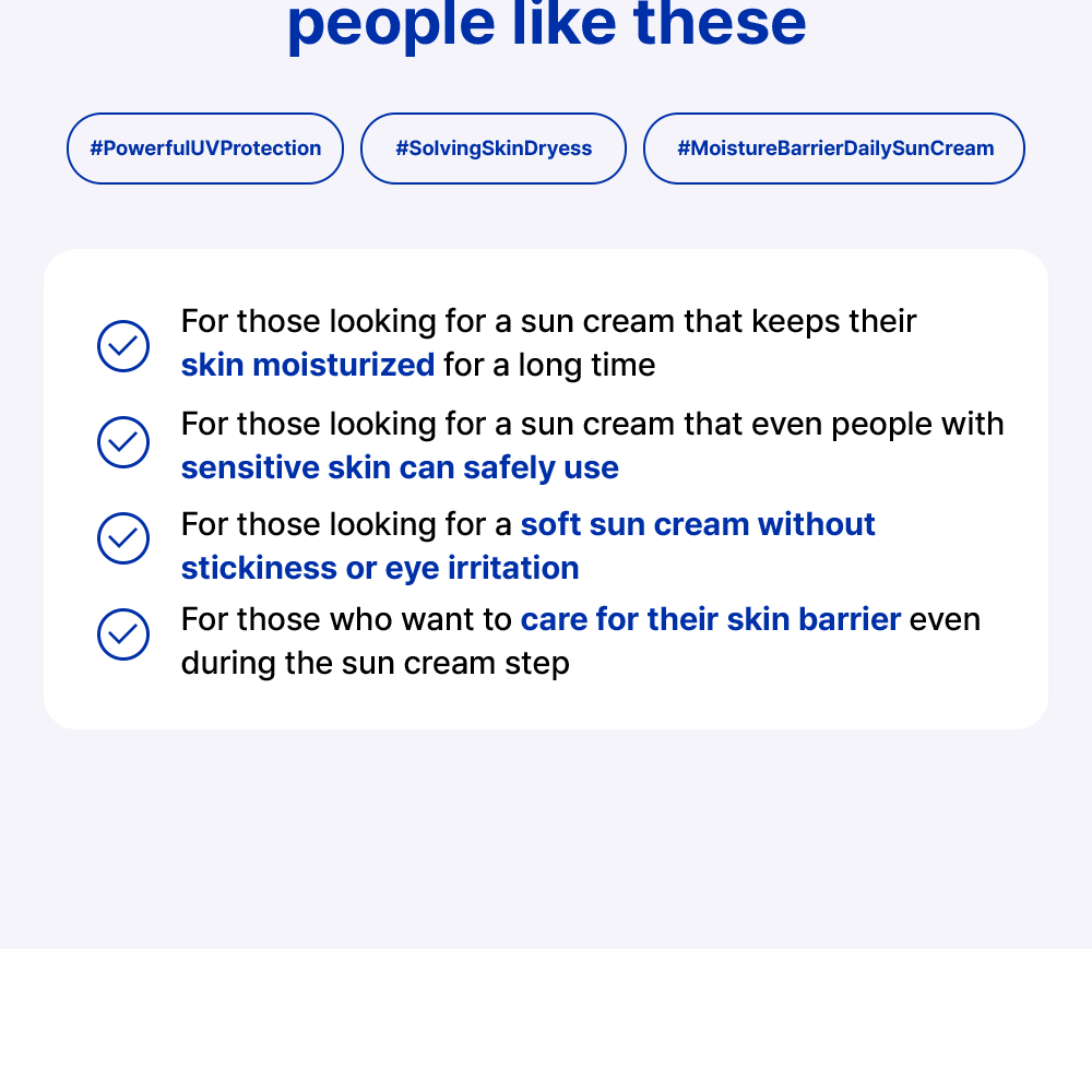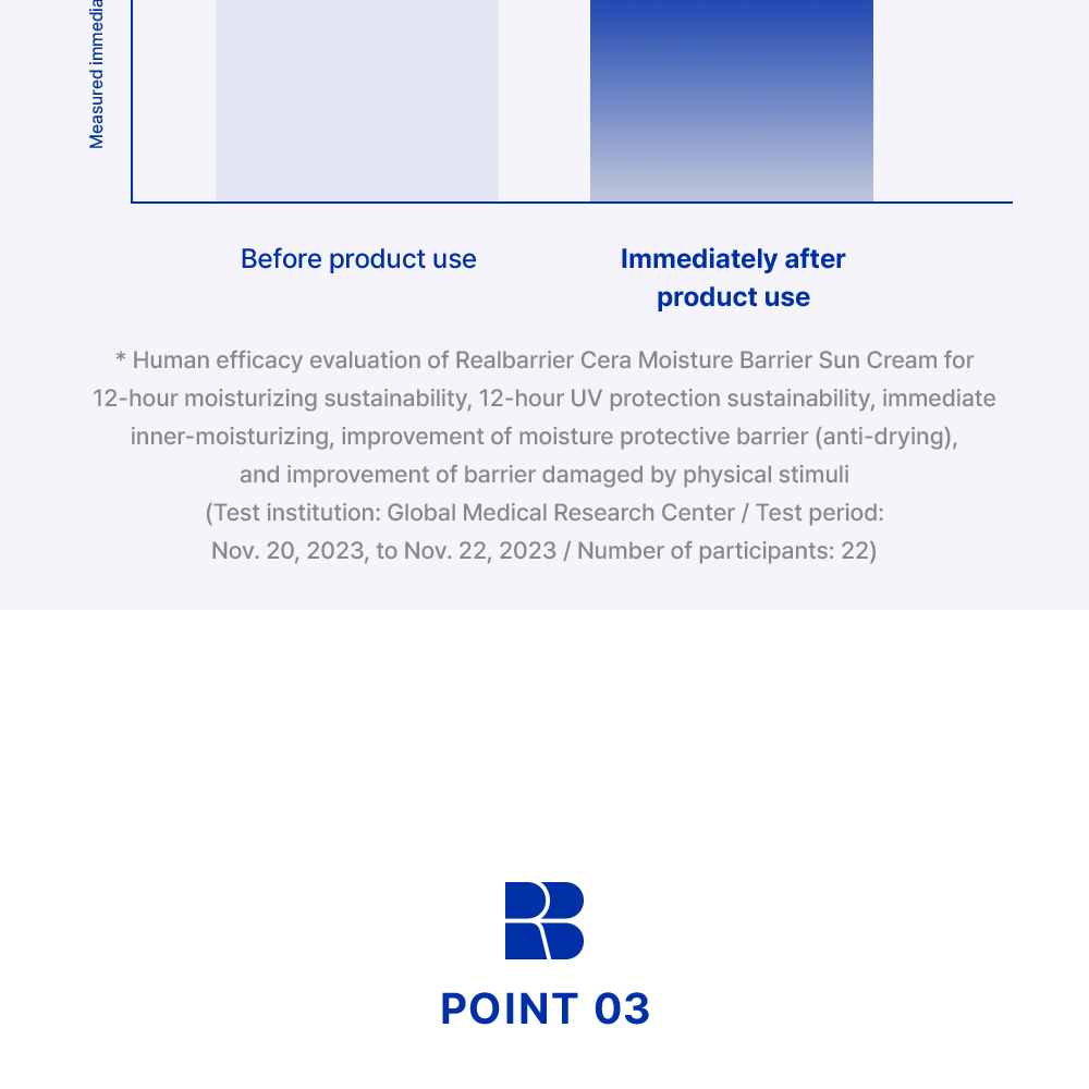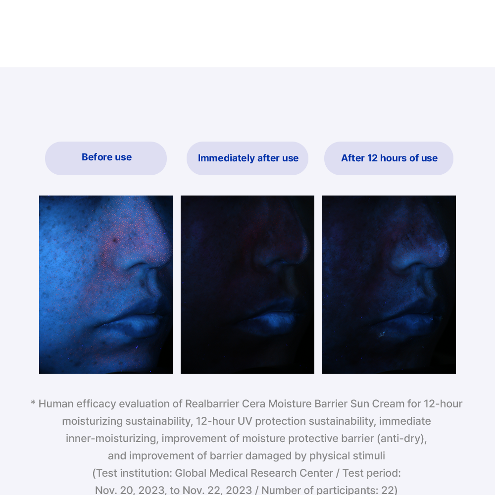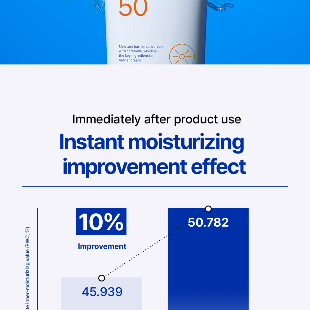 -Sunscreen containing independently developed omega ceramide, a key ingredient in skin barrier cream, simultaneously blocks UV rays and moisture evaporation for 12 hours.