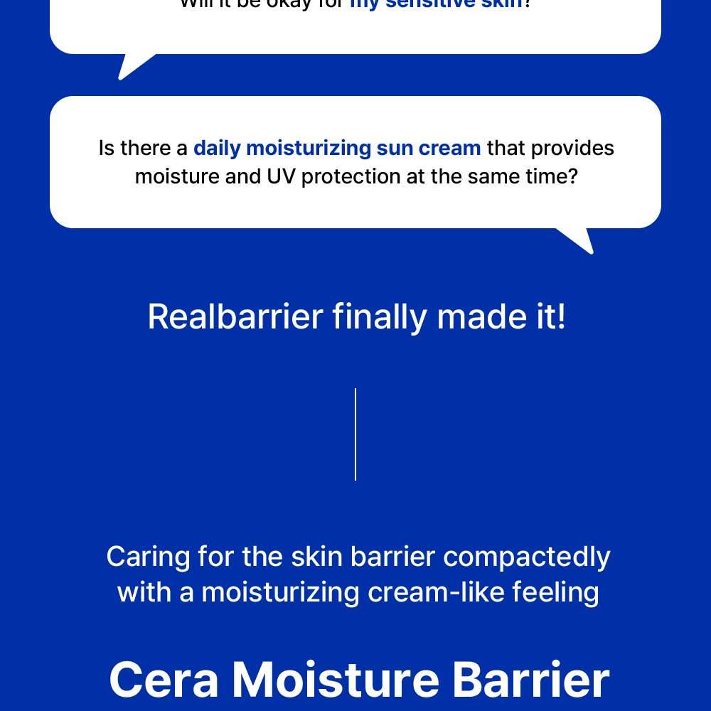 - Ceramide, a key ingredient in skin barrier cream, cares for the irritated skin barrier and moisturizes with 65% moisture essence.