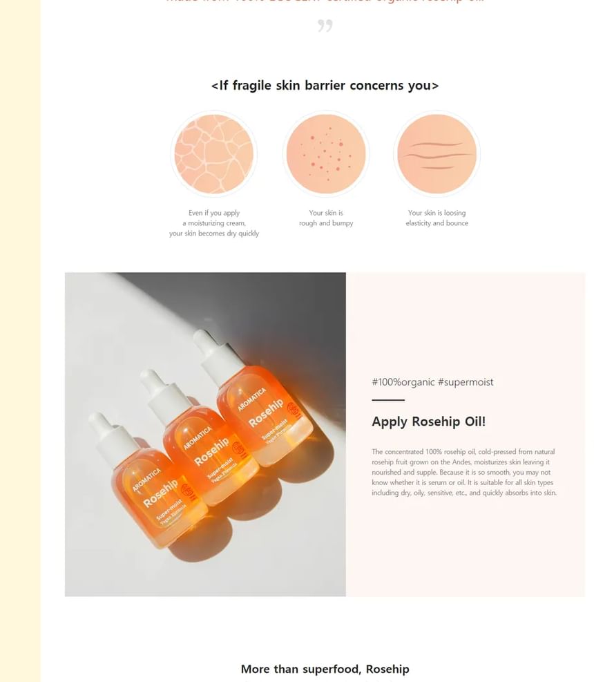 ![[AROMATICA] Organic Rose Hip Oil 30ml](https://d2c3d01lcpw2ui.cloudfront.net/gl/data/item/1547538395/66Gc7KaI7Z6Z.jpg)
