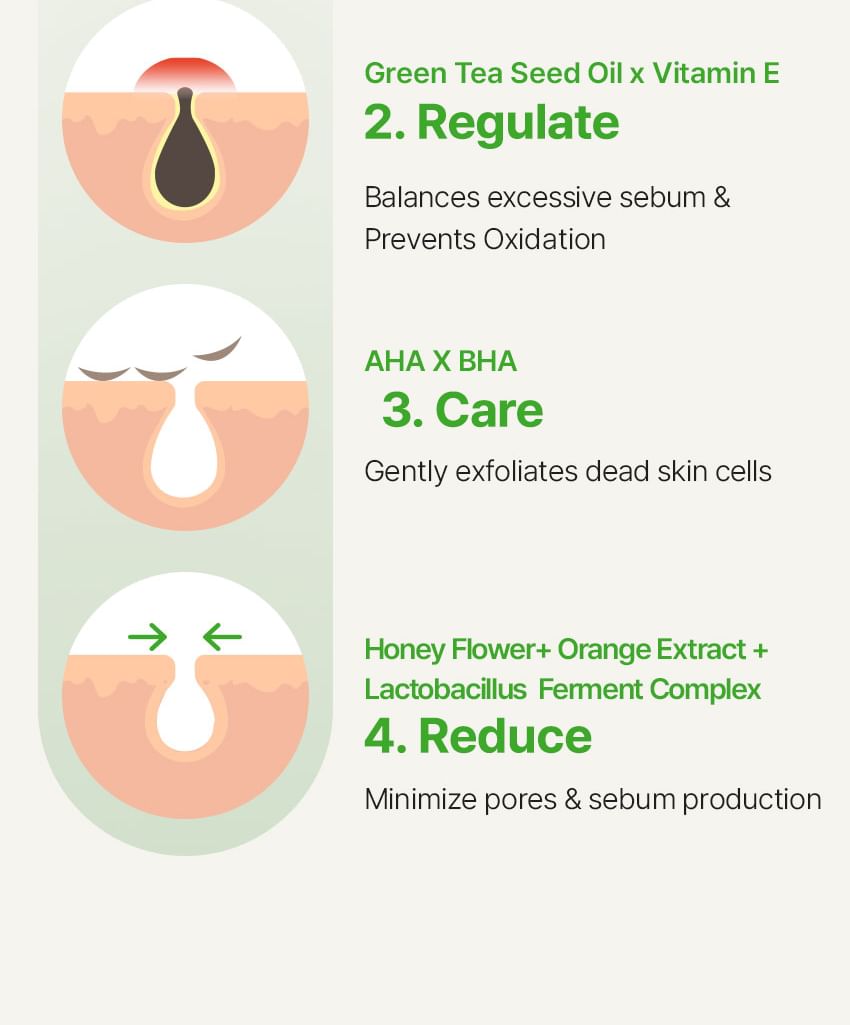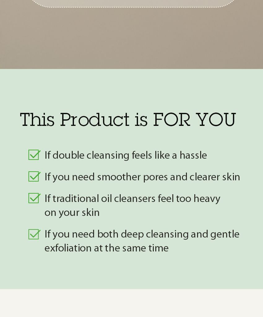 Pore Care with Natural Ingredients: Contains 5 plant-derived oils, including Green Tea Seed and Jojoba Oil, to cleanse and soften sebum while preventing pore clogging.
