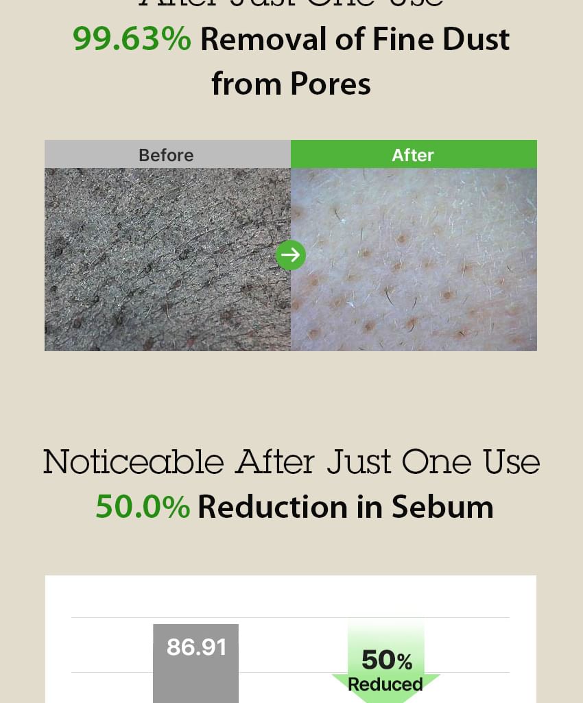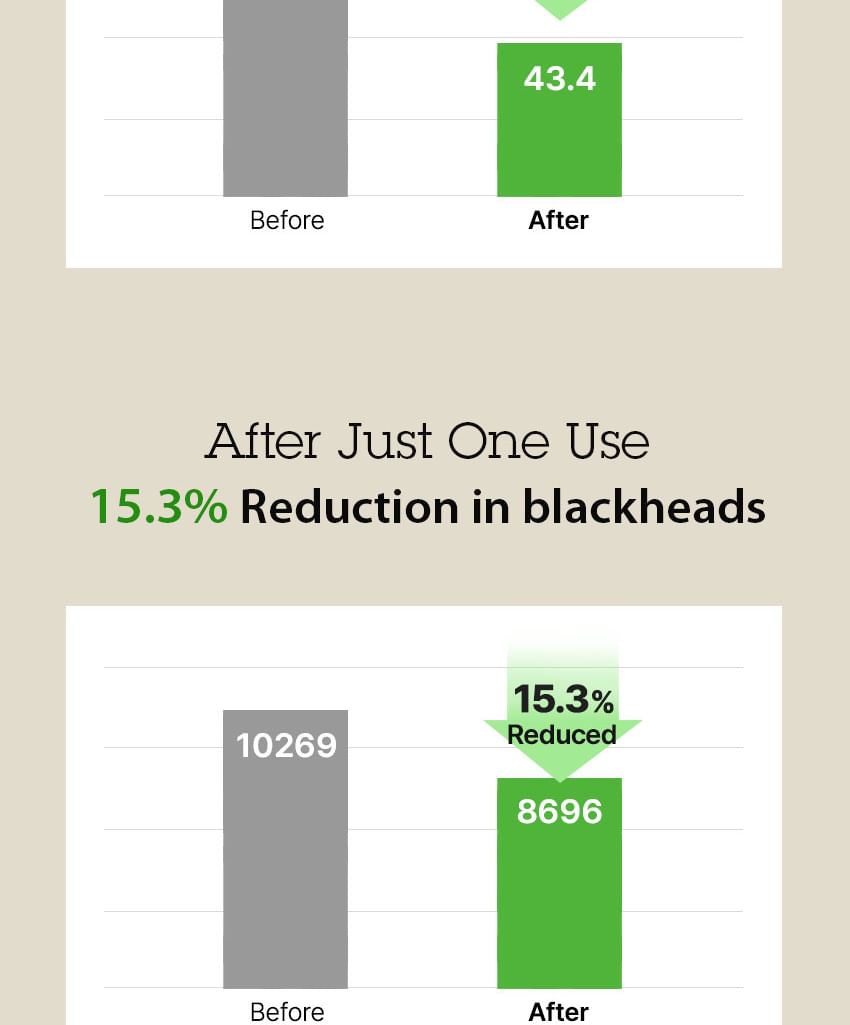 Clinically Proven Results: Reduces sebum and improves pore size after just one use, providing clear and moisturized skin with 95.83% user satisfaction.