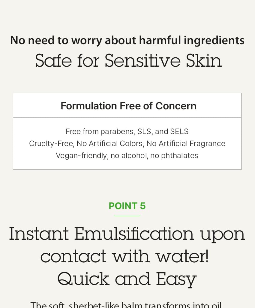 Its sherbet-like texture transforms into oil upon contact with skin to thoroughly remove makeup, excess sebum and grime from face.