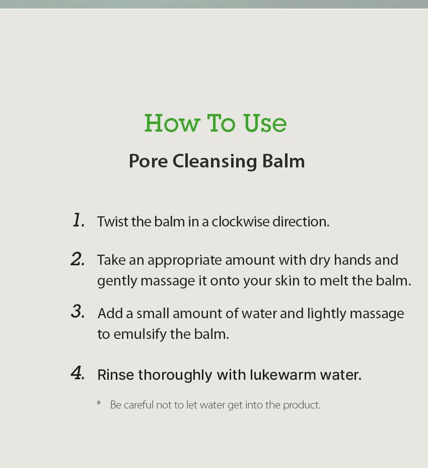 Always apply cleansing balm to dry skin with dry hands. This allows the oils to fully break down makeup, sunscreen, excess sebum, and impurities before water is introduced.