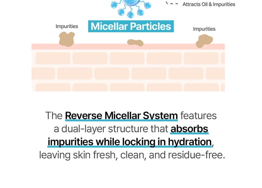 Formulated with reverse micelles technology to eliminate skin impurities with oil ingredients while leaving a moisturizing finish for smooth skin texture.