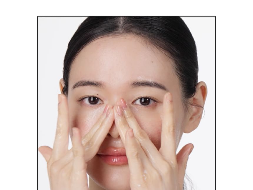 2. Gently massage along the texture of your skin, moisten with water and continue rolling until the oil transforms into a milky consistency.