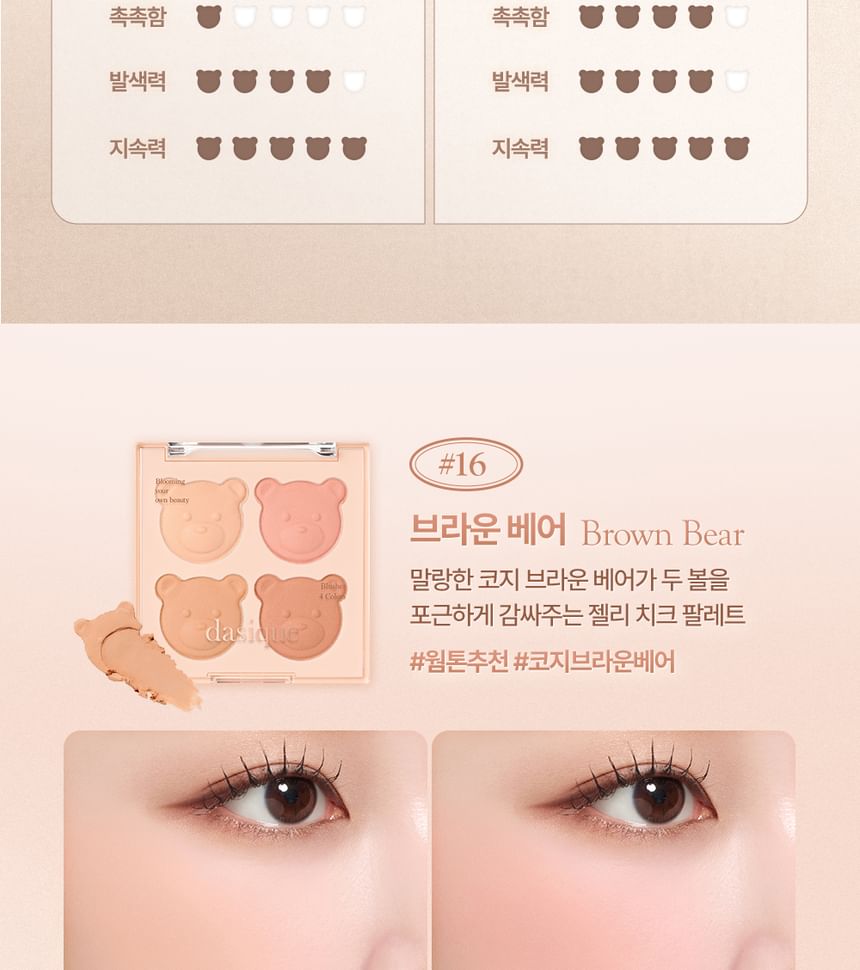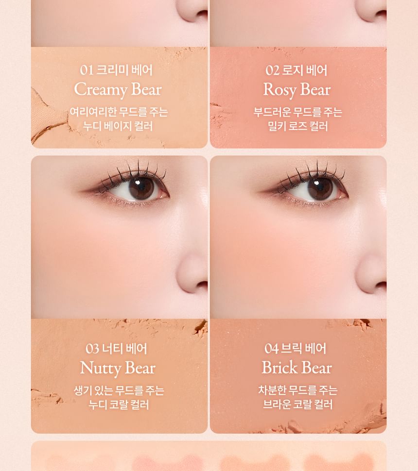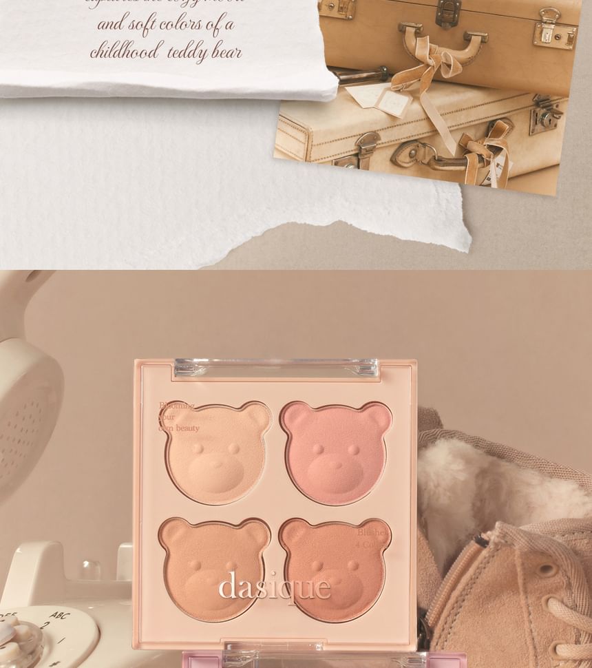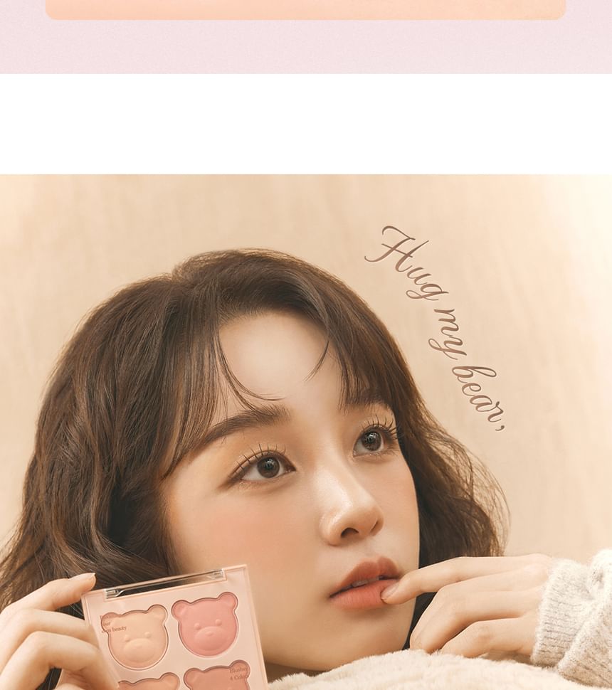 Add a natural-looking flush to your cheeks with this blush palette comprising four complementary shades contained in bear-shaped pans.