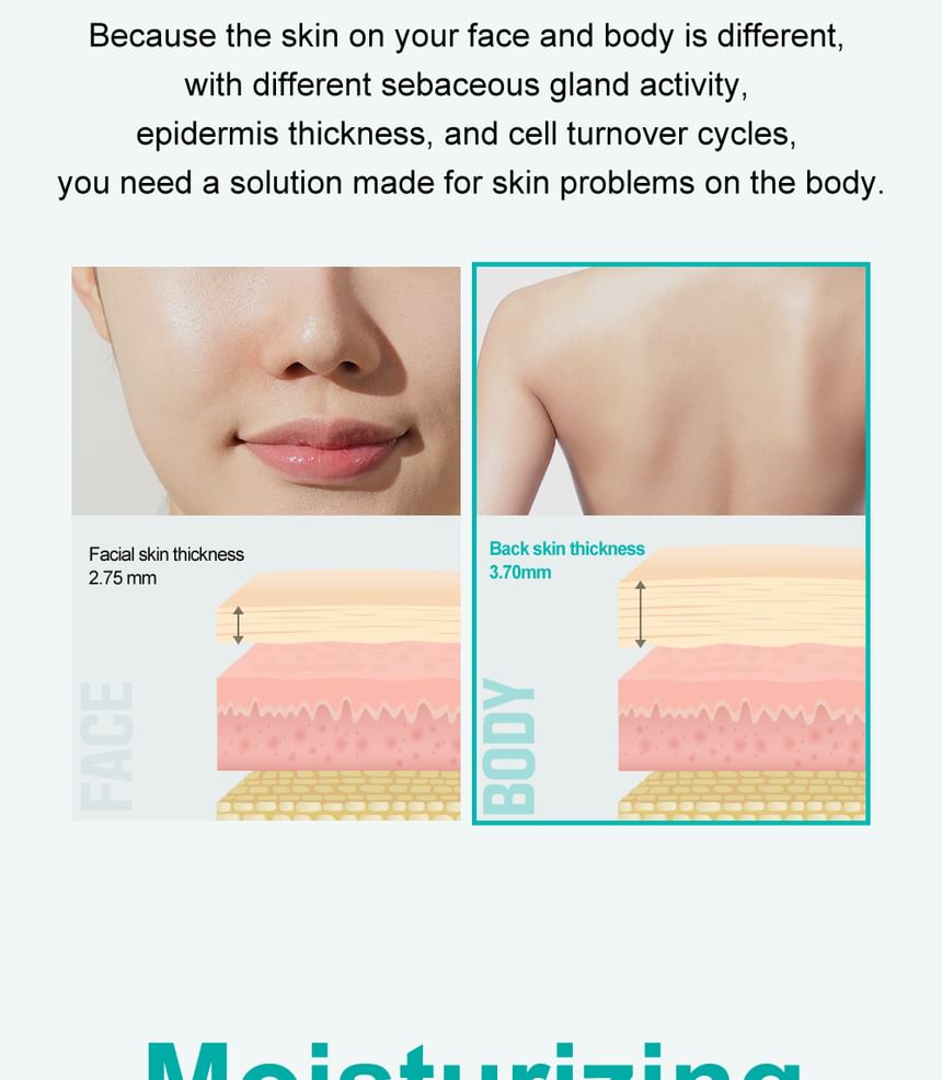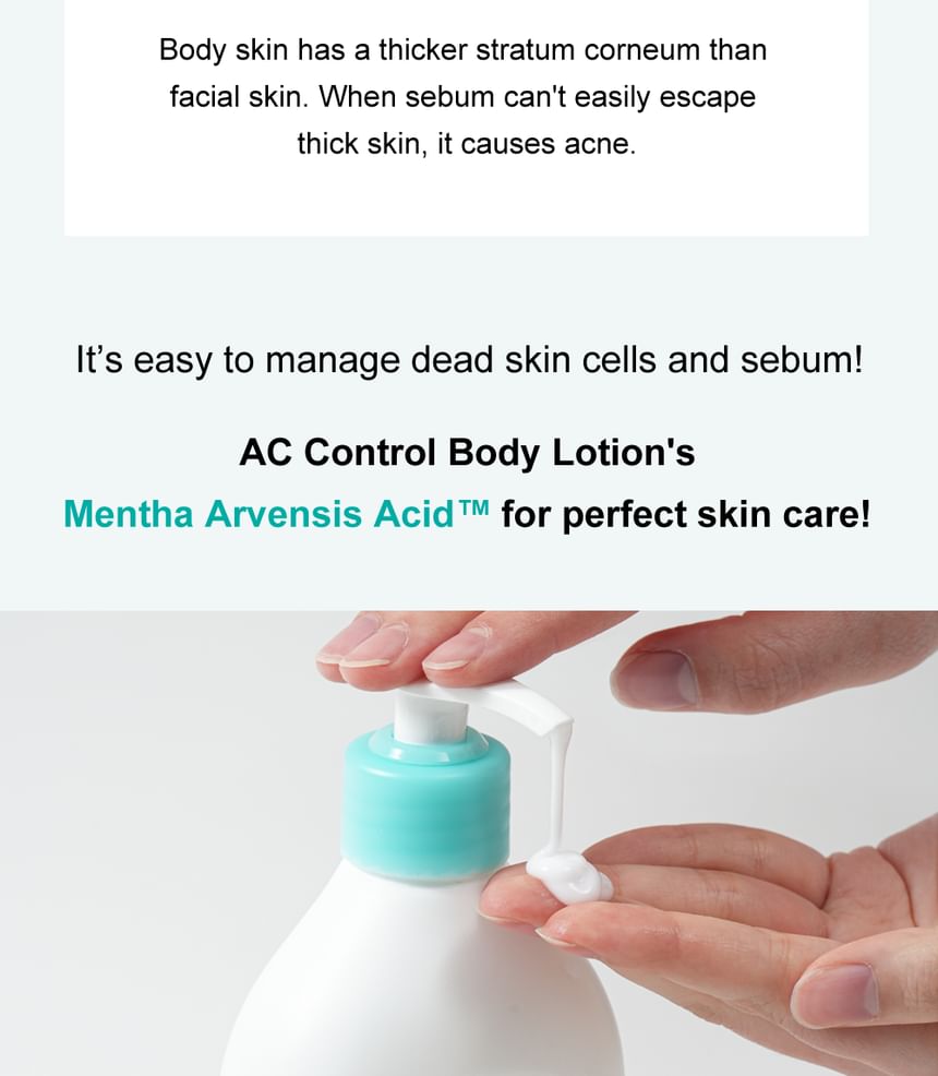 - 3-IN-1 BODY LOTION WITH REFRESHING SCENT: Exfoliation, sebum control, and anti-blemish care