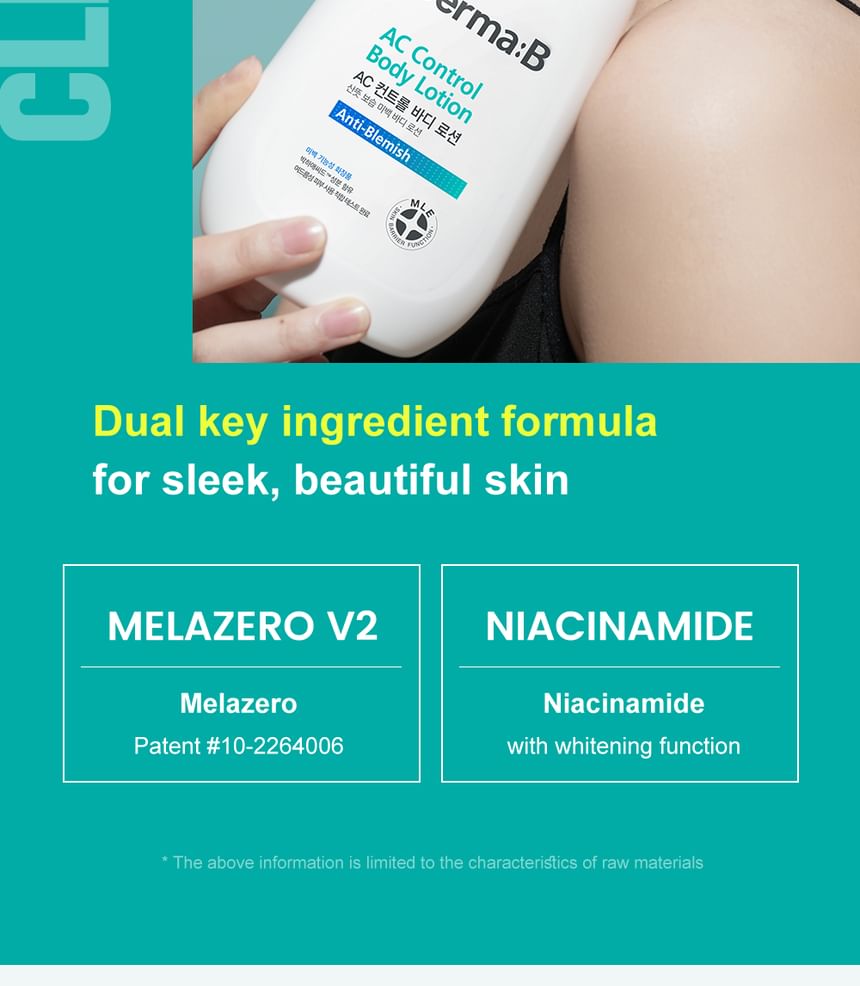 - FROM SOOTHING TO HEALTHY RADIANCE: Body lotion’s special formula with Niacinamide and patented ingredient MELAZERO V2 completes smooth and dewy skin