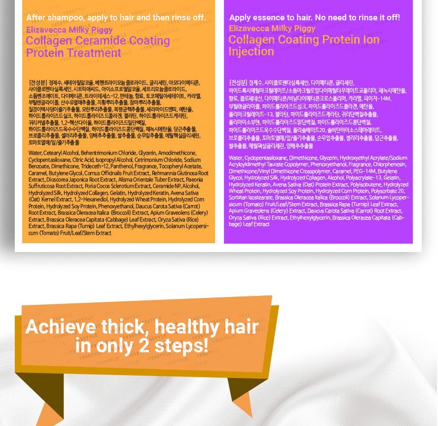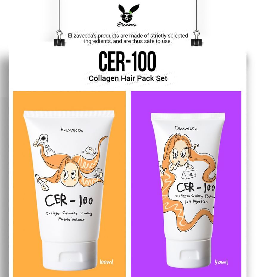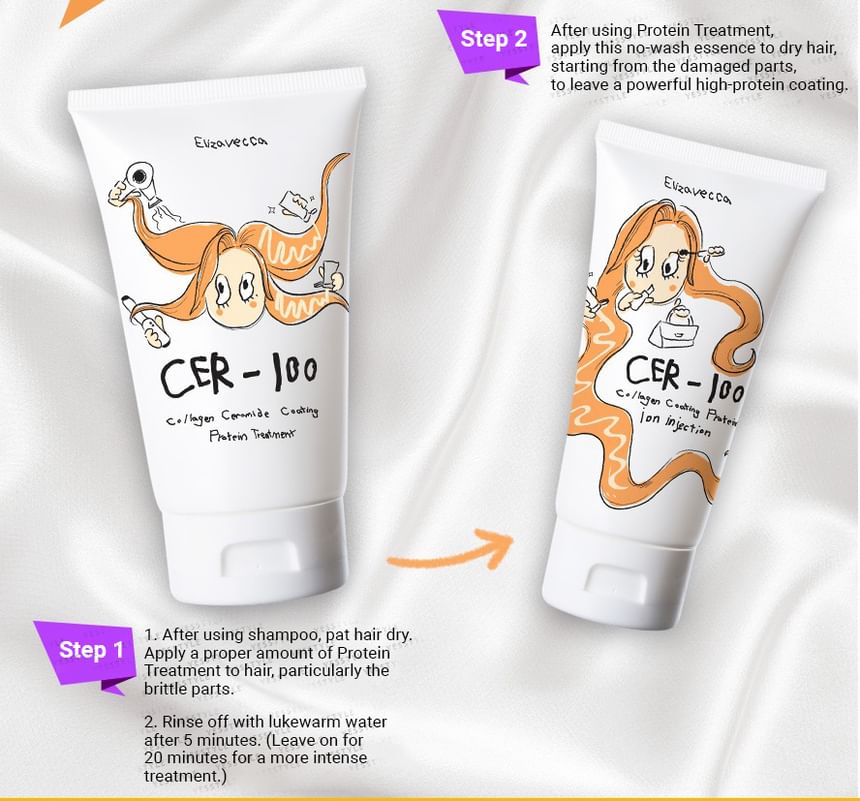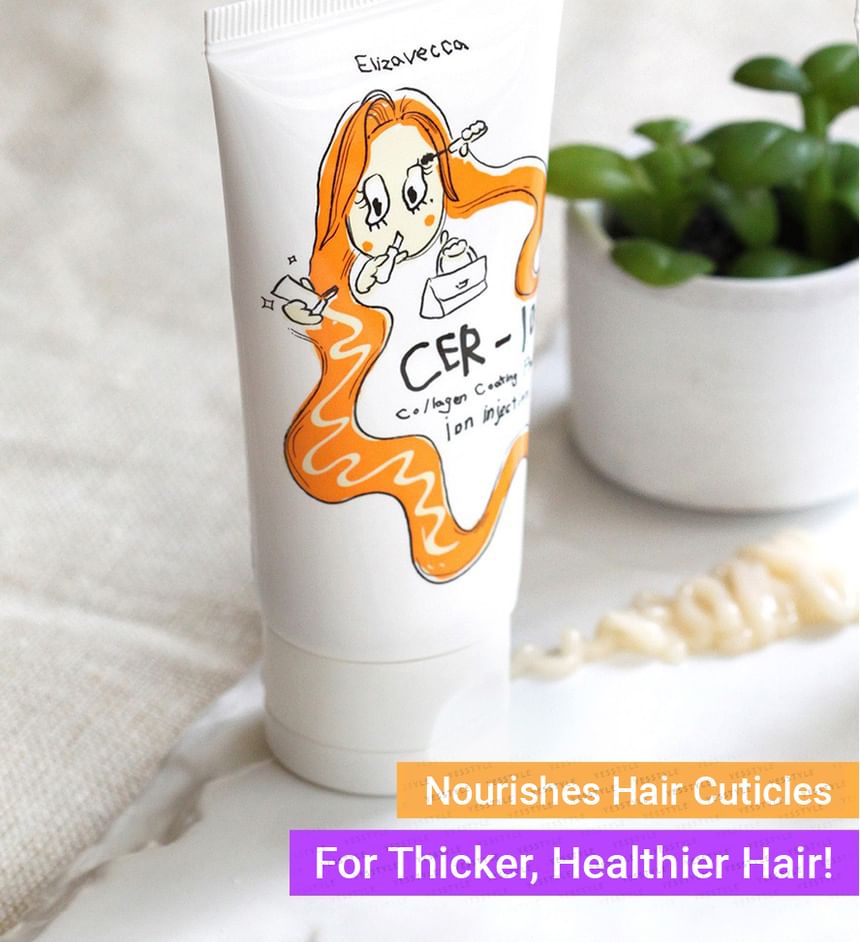 Inject full nutrients into your hair with ELIZAVECCA CER 100 Collagen Coating Protein Ion Injection. It is a hair essence that transforms damaged, split hair to soft silky hair. Containing collagen, keratin and various botanical ingredients, it prevents hair damage and nourishes your hair.