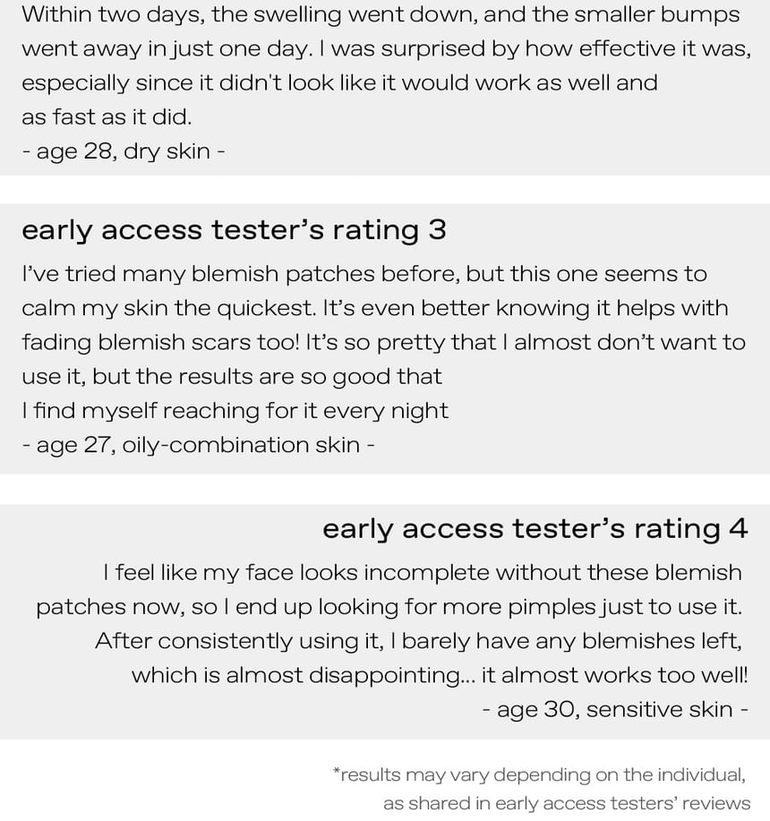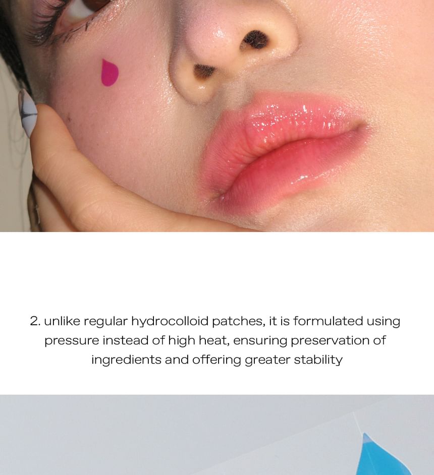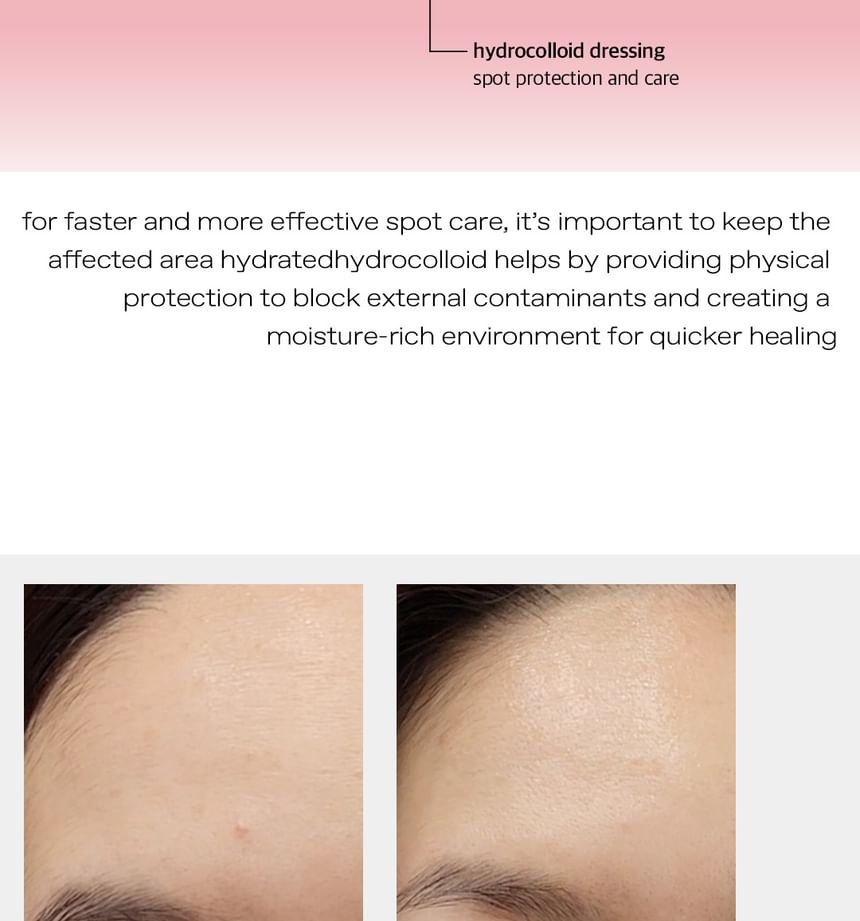 The hydrocolloid dressing of the patch protects skin from external impurities and facilitates instant spot care with moisture.
