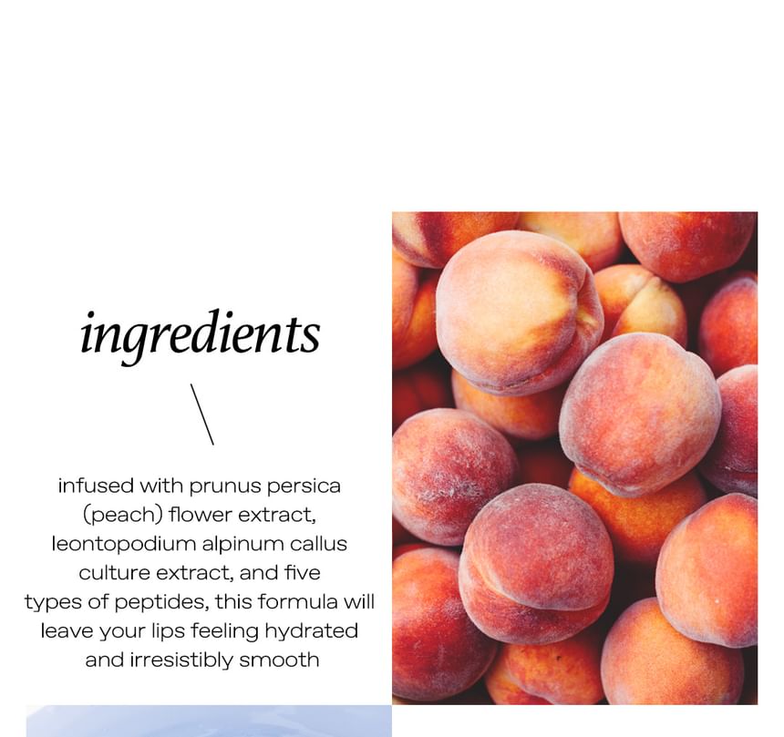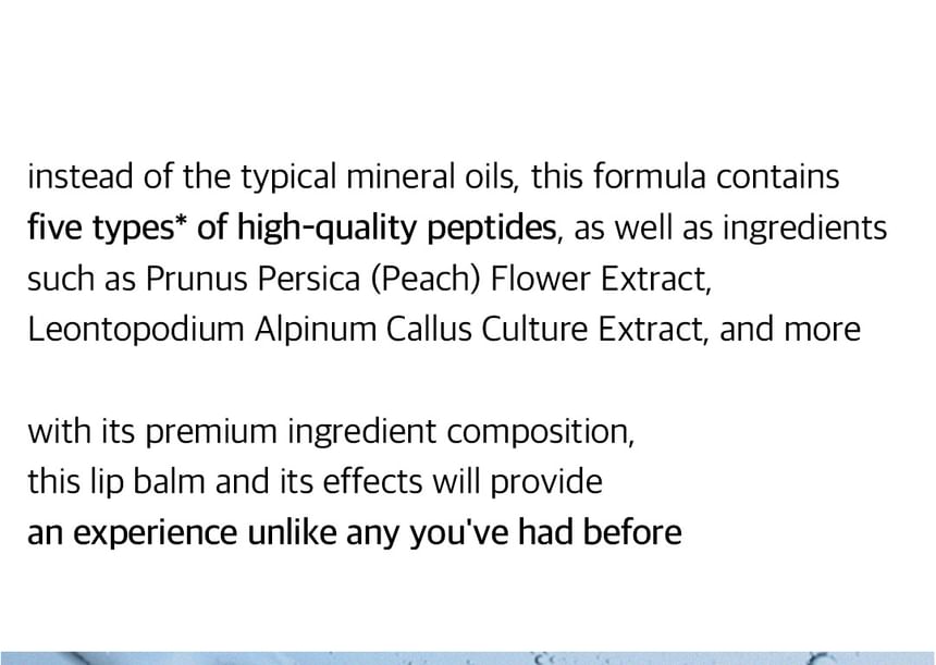 Formulated with 5 types of peptides including Oligopeptide-1 and Tripeptide-1 to soften lips and keeps lips bouncy.