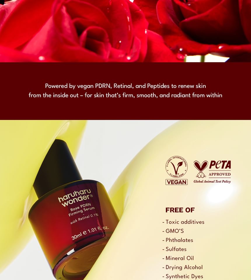 Restore skin’s youthful bounce and glow with haruharu wonder’s Rose PDRN Firming Serum.
