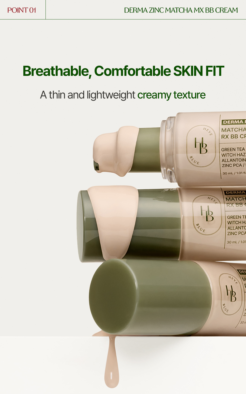 [HEVEBLUE Derma Zinc Matcha MX BB Cream 1.0 Nude]