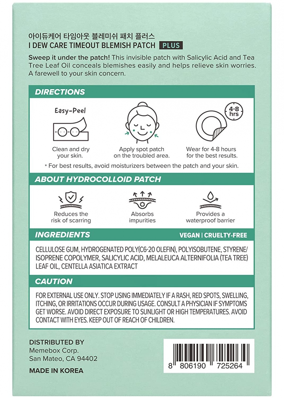 # Plus: Tea Tree Leaf Oil, Centella Asiatica Extract, Hydrocolloid