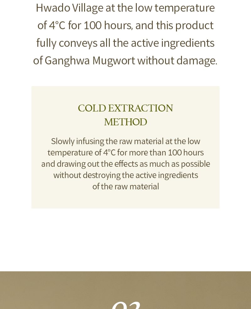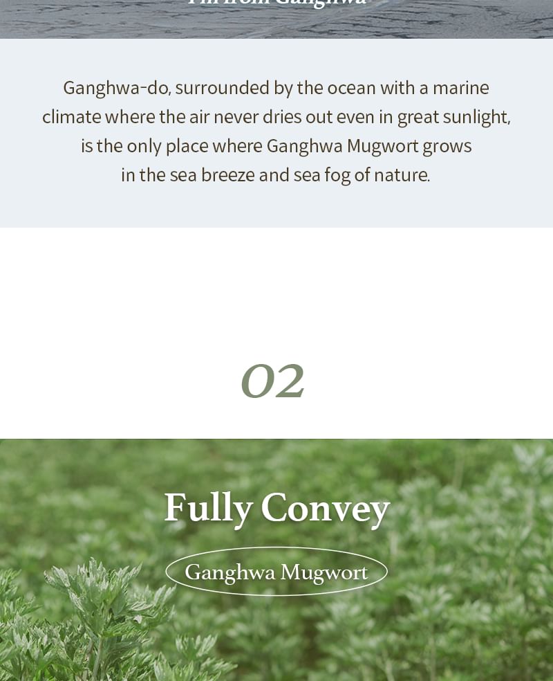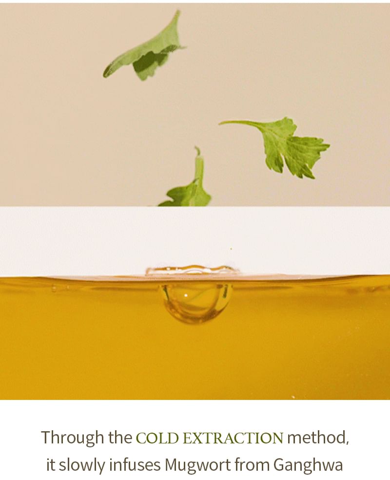 Infused with 60% mugwort extract from Ganghwa Hwado Village and formulated according to the brand's Cold Extraction Method for optimizizng skin care benefits.