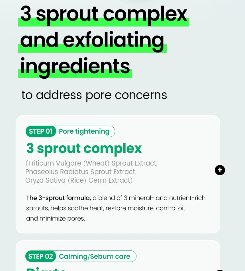 Formulated with 3-Sprout Complex for maintaining the oil-water balance of the skin and controlling sebum production to prevent excessive sebum formation which may lead to skin inflammation and acne formation.