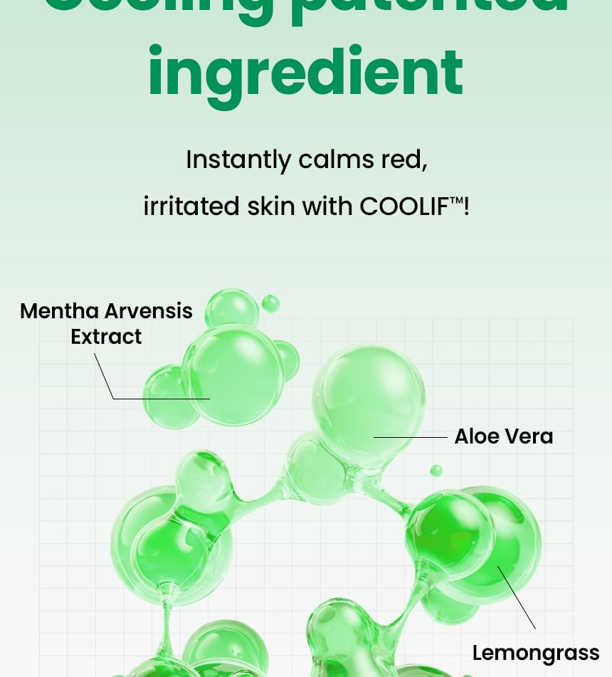 Contains patented ingredients Diarte and Coolif to provide instant calming and cooling effects for stabilizing irritated skin and lowering skin temperature.