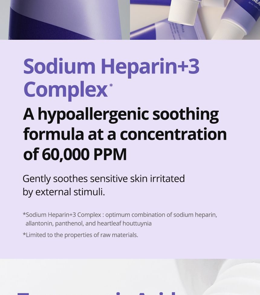 Formulated with NoSCalm Complex (sodium heparin, allantoin, panthenol and Heartleaf Houttuynia) to soothe sensitive, irritated skin.