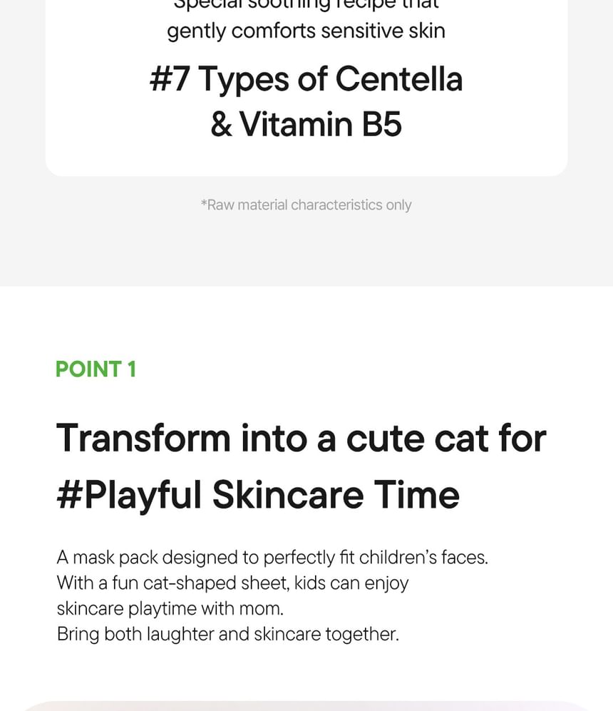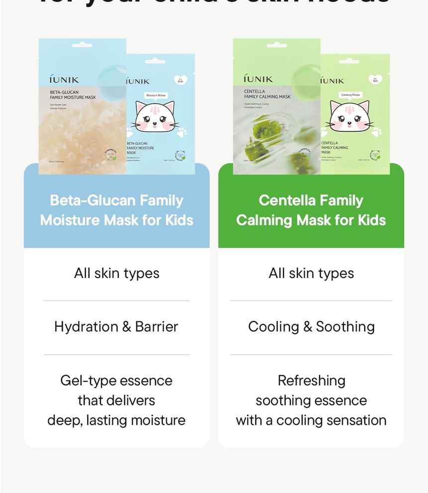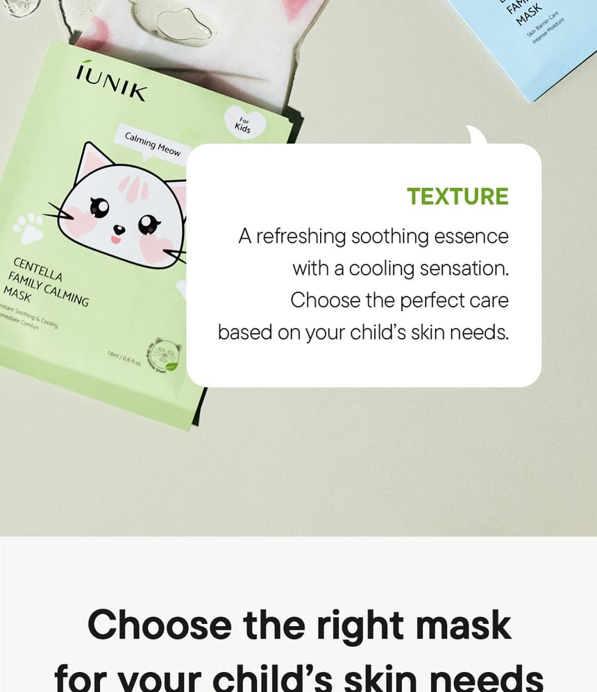 Create cute memories with iUNIK’s Centella Family Calming Mask For Kids enriched with seven types of centella asiatica ingredients.