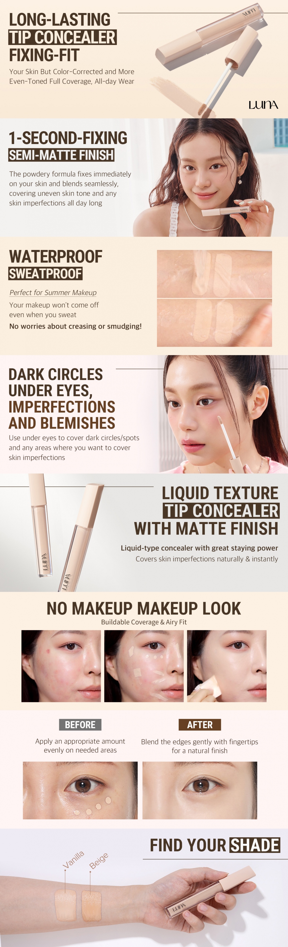 EASY APPLICATION: LUNA Concealer gives a lightweight and flawless look and can easily apply with a double polymer brush (The package design has been renewed.)