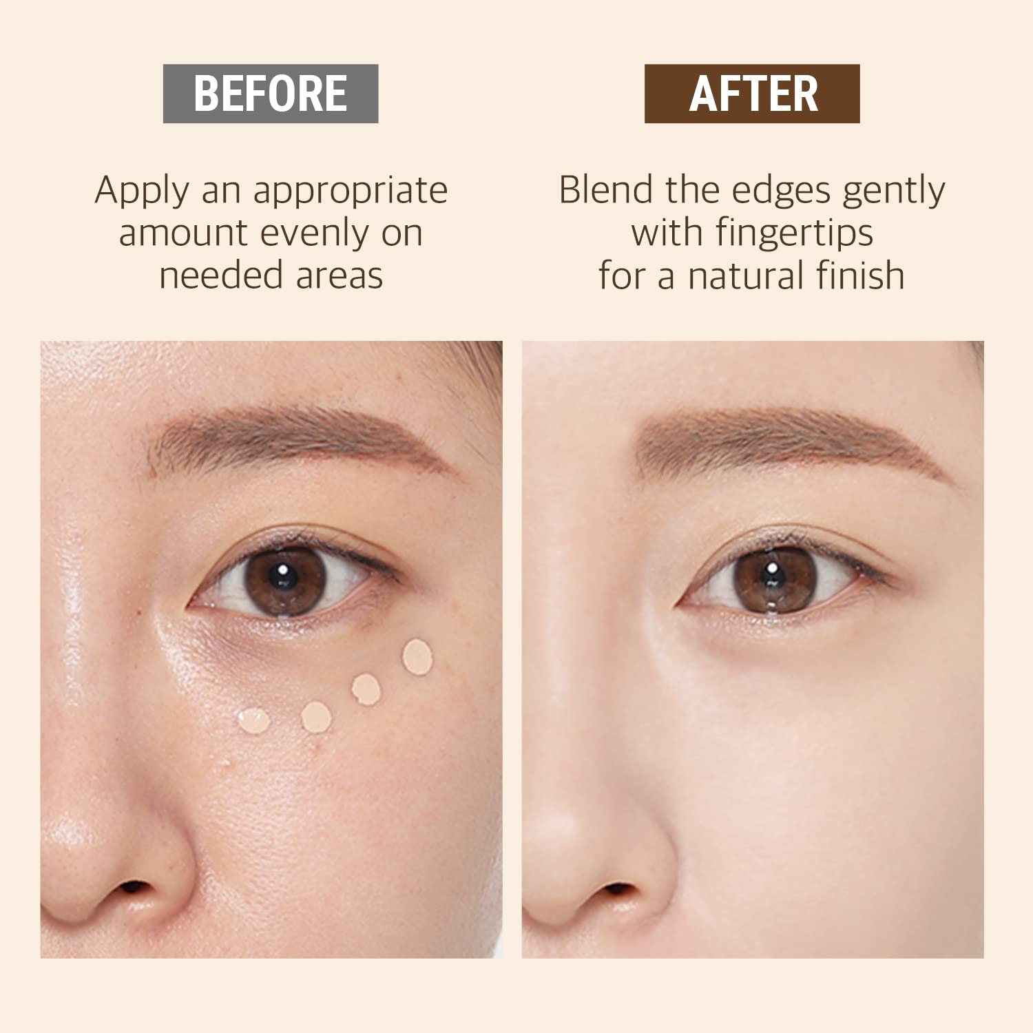 FULL COVERAGE: Apply on your desired areas such as dark circles, redness, areas with skin trouble, and scars. The product doesn't crack or clump into wrinkles and fits like your own skin