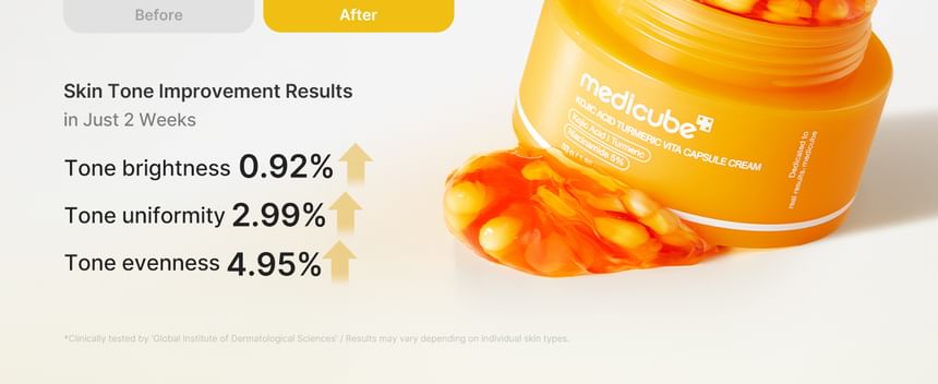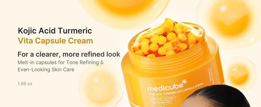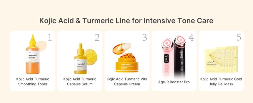 Best with: For enhanced benefits, use Kojic Acid Turmeric Vita Capsule Cream with medicube’s Age-R Booster Pro for deeper absorption of ingredients.