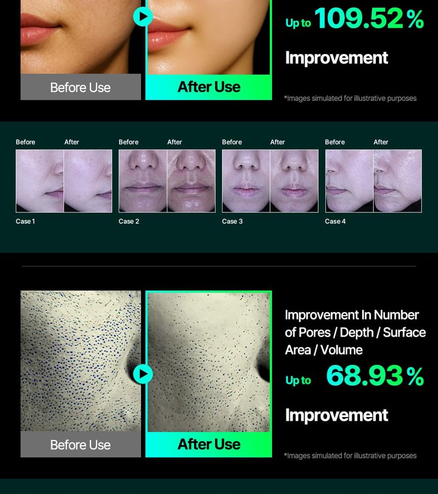 4. Pore care: By forming micro-channels in the skin, the number, surface area, and size of enlarged pores are visibly reduced.