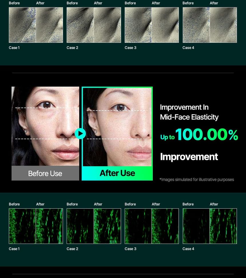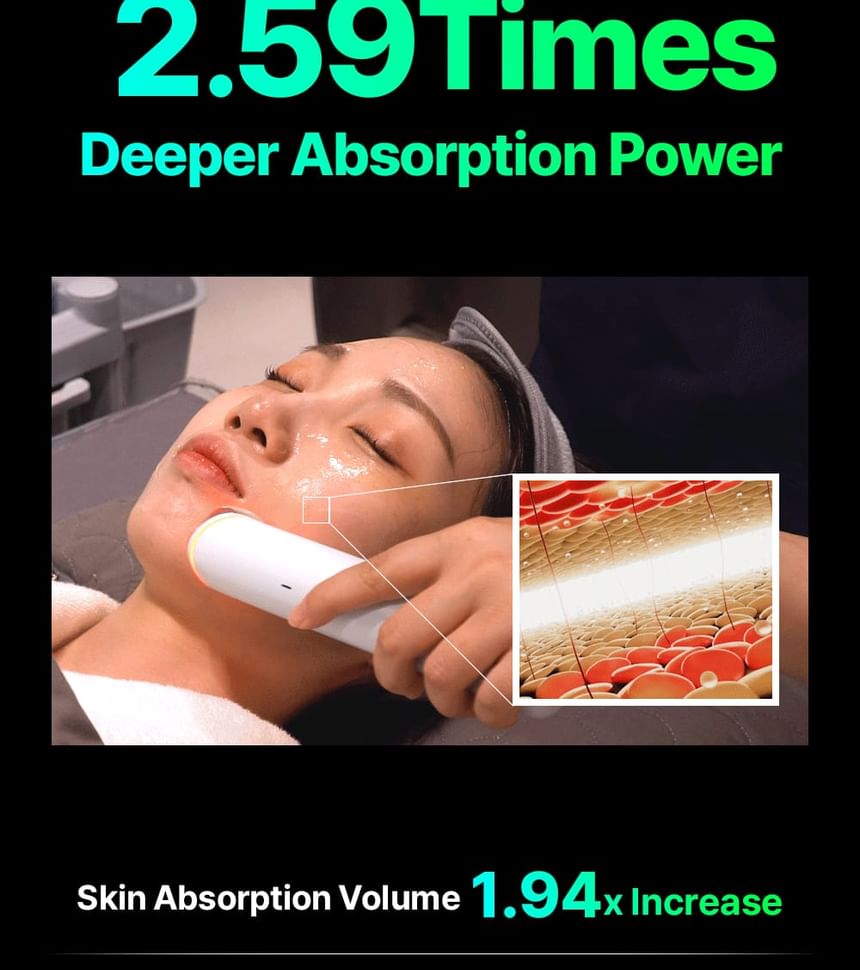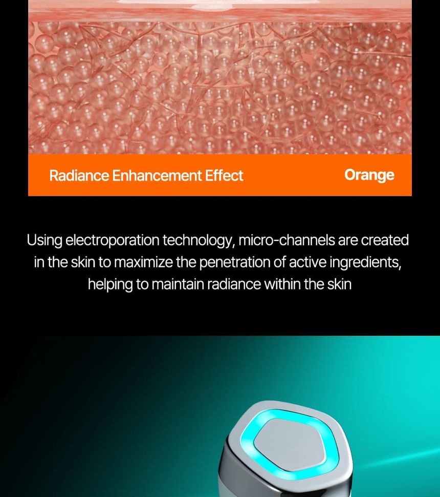 1. Glow care: Using electroporation technology, micro-channels are created in the skin to maximize the penetration of active ingredients, helping to maintain radiance within the skin.