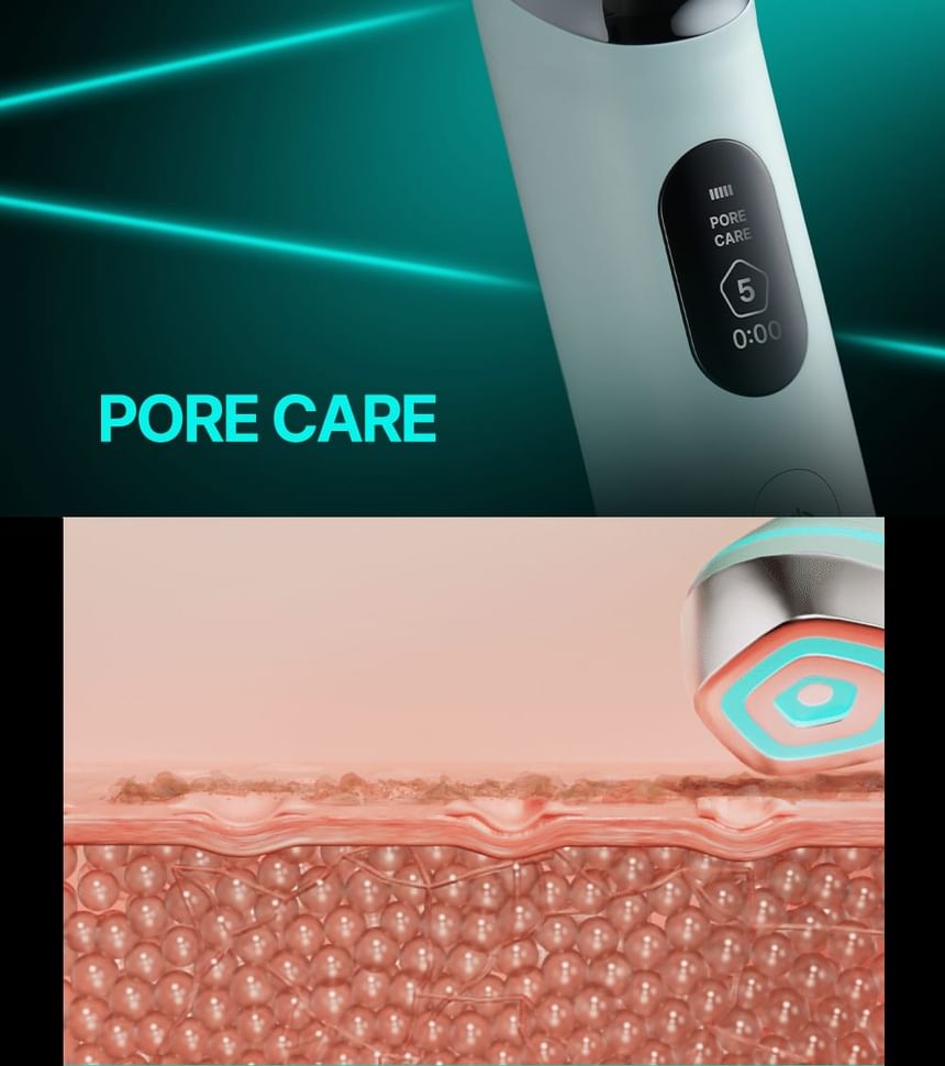2. After cleansing, apply a sufficient amount of skincare product like essence or gel cream to the treatment area. Stay dry for pore care mode.