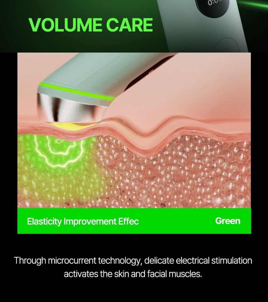 2. Volume care: Through microcurrent technology, delivers electrical stimulation to activate the skin and facial muscles.