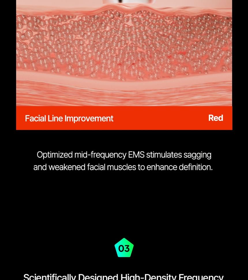 3. Line care: Optimized mid-frequency EMS stimulates sagging and weakened facial muscles to enhance definition.