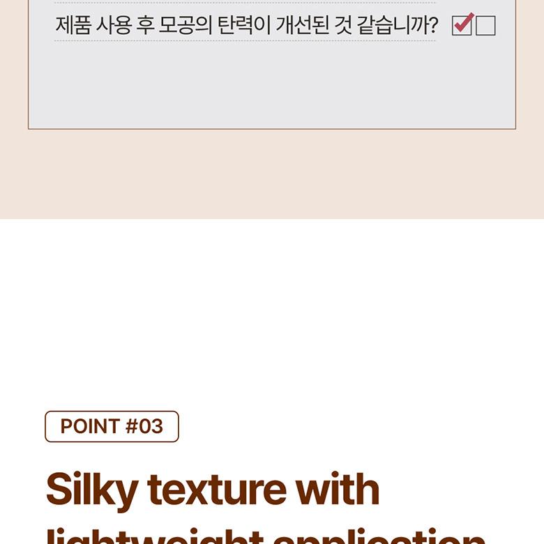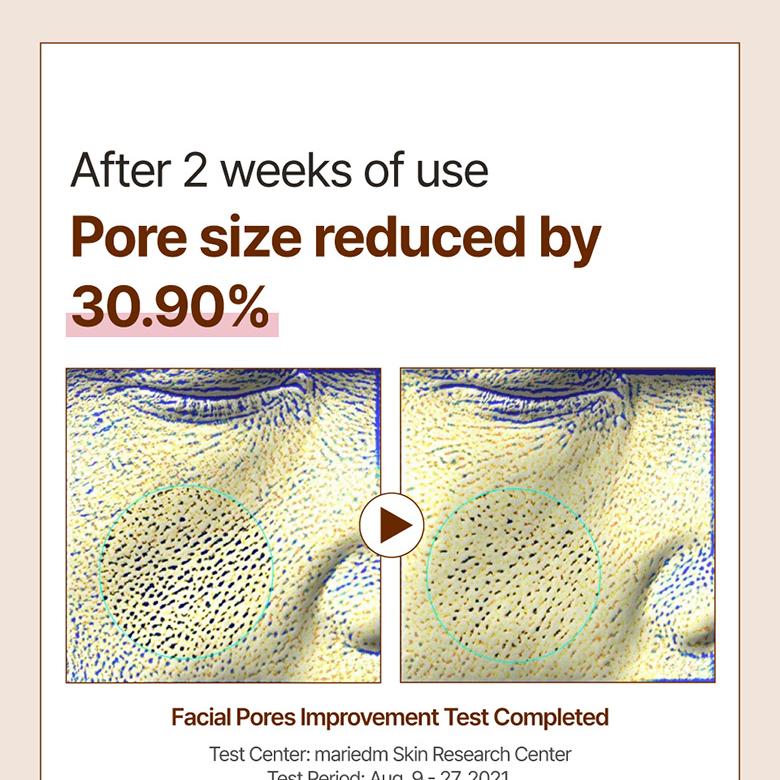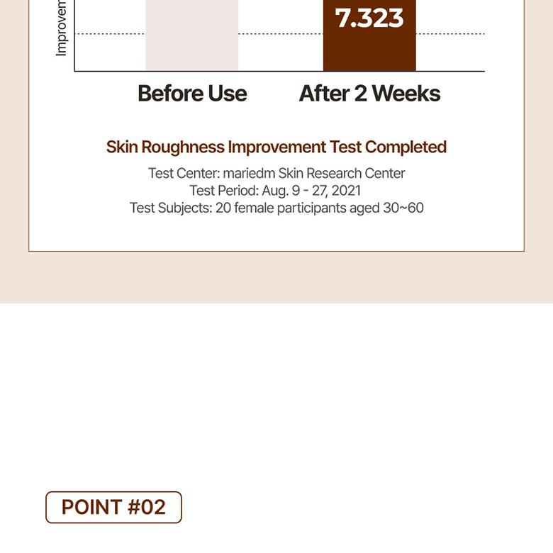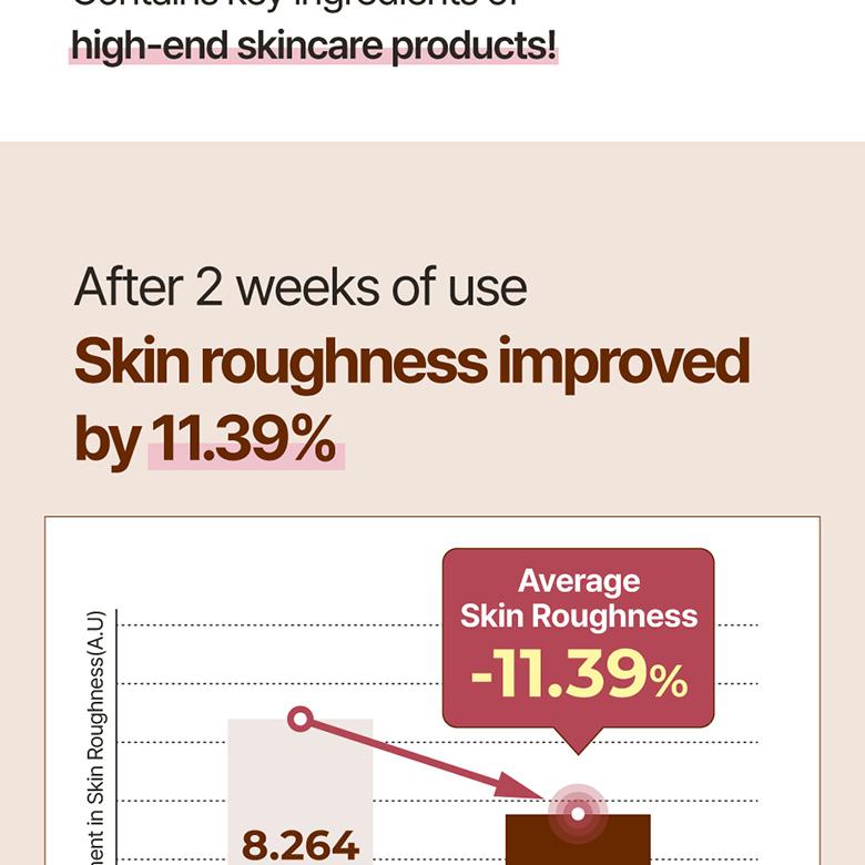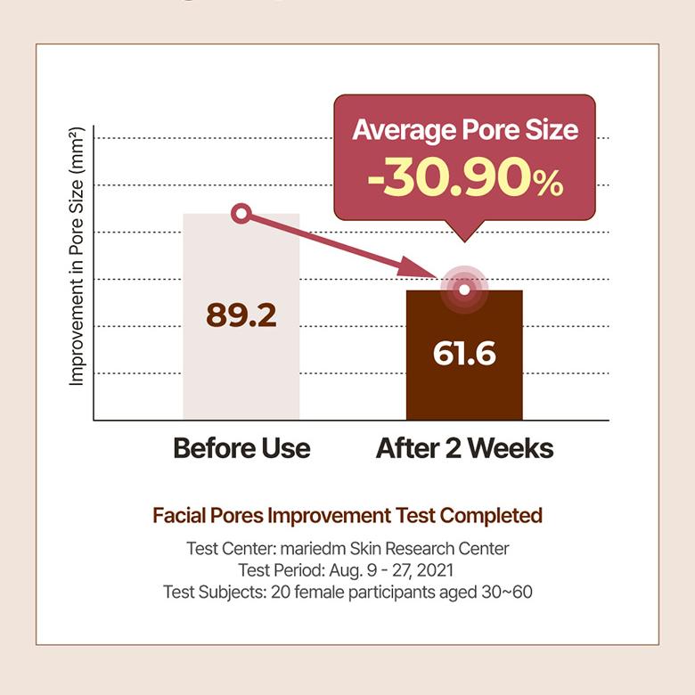 After 2 weeks of use, there was a 30.90% reduction in pore size, an 11.36% decrease in average skin roughness, and satisfaction results show that the skin became moisturized and the skin texture was improved.