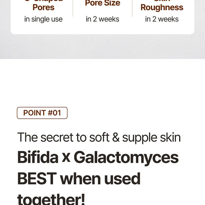 It contains 42% bifida ferment lysate and 21% galactomyces ferment filtrate.