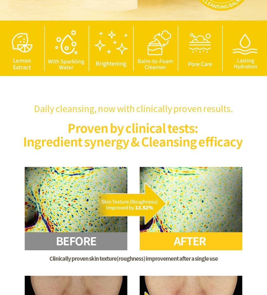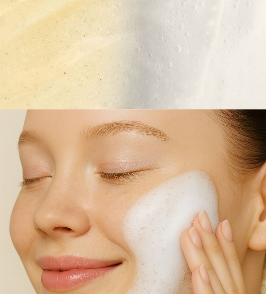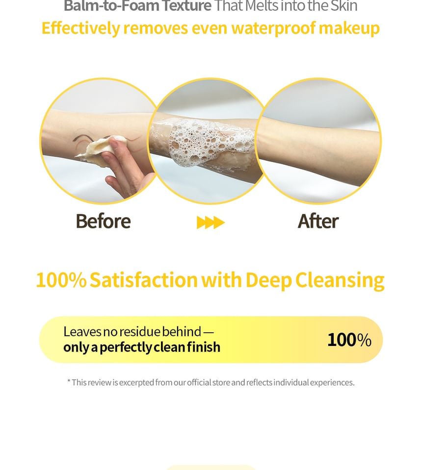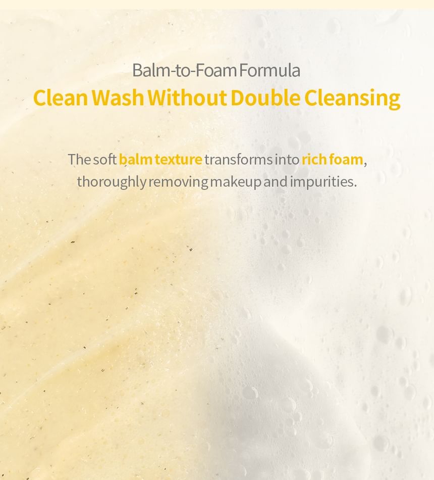 Balm-to-Foam formula offers a clean wash without the need for double cleansing, removing makeup and impurities.
