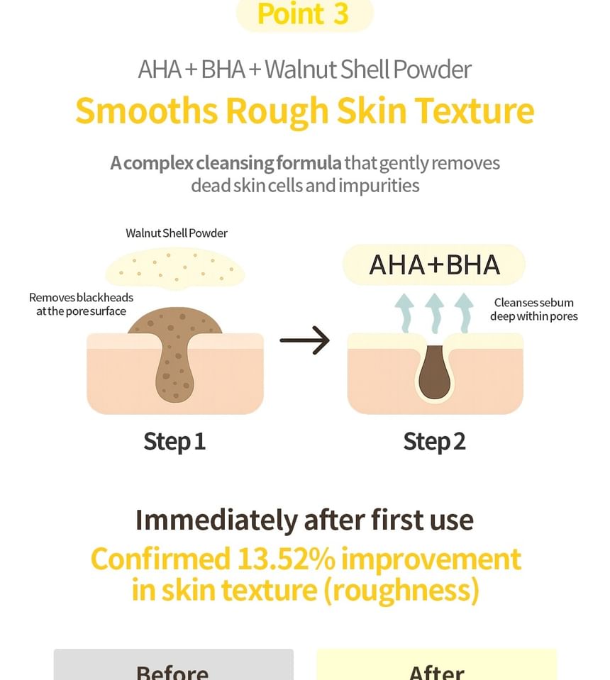 Glycerin, Water, Sodium Cocoyl Glycinate, Butylene Glycol, Sodium Lauroyl Glutamate, Hydroxypropyl Starch Phosphate, Lauryl Betaine, Tocopheryl Acetate, Tocopherol, Allantoin, Daucus Carota Sativa (Carrot) Root Extract, Rosmarinus Officinalis (Rosemary) Leaf Extract, Ilex Paraguariensis Leaf Extract, Corchorus Olitorius Leaf Extract, Sapindus Mukorossi Fruit Extract, Borago Officinalis Extract, Saponaria Officinalis Leaf Extract, Jasminum Officinale (Jasmine) Extract, Quillaja Saponaria Bark Extract, Melaleuca Alternifolia (Tea Tree) Leaf Extract, Citric Acid, Salicylic Acid, Sodium Chloride, Juglans Regia (Walnut) Shell Powder, Helianthus Annuus (Sunflower) Seed Oil, Malt Extract, Hydrogenated Lecithin, Beta-Carotene, Water, Citrus Limon (Lemon) Fruit Extract, 1,2-Hexanediol, Polyglyceryl-4 Caprate, Polyglyceryl-6 Caprylate, Dipropylene Glycol, Hydroxyacetophenone, Ethylhexylglycerin, Caprylyl Glycol, Caprylhydroxamic Acid, Disodium EDTA, Fragrance, Limonene