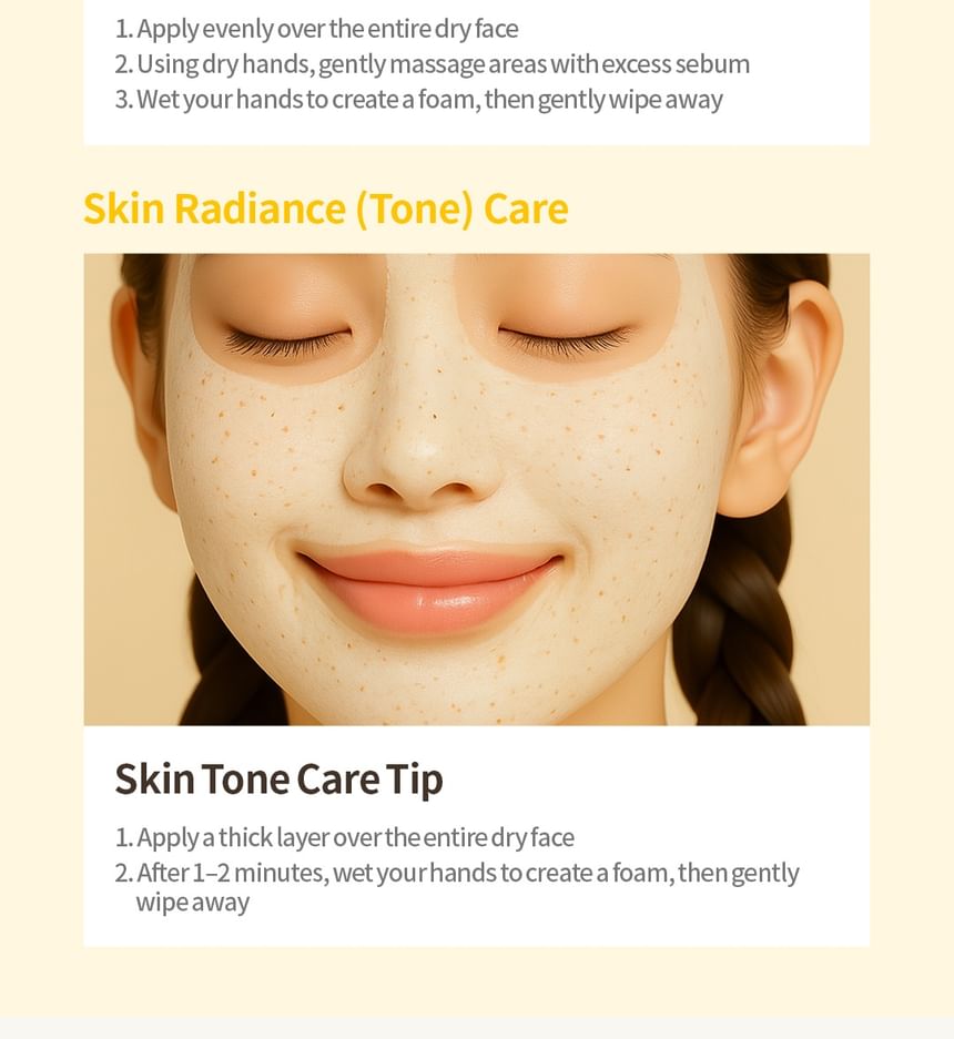 2. For the skin tone care, apply a thick layer over the entire dry face and wash it with lukewarm water after 1-2 minutes.