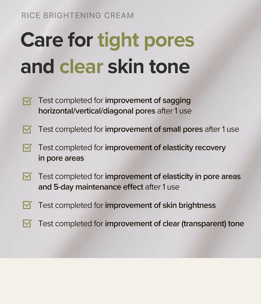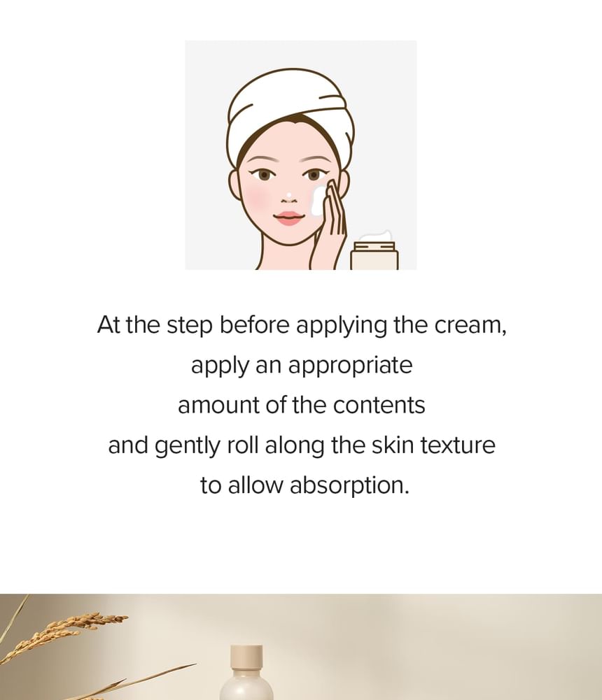 A rice moisturizing cream that hydrates and brightens skin and creates a clear and transparent complexion.