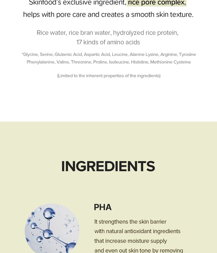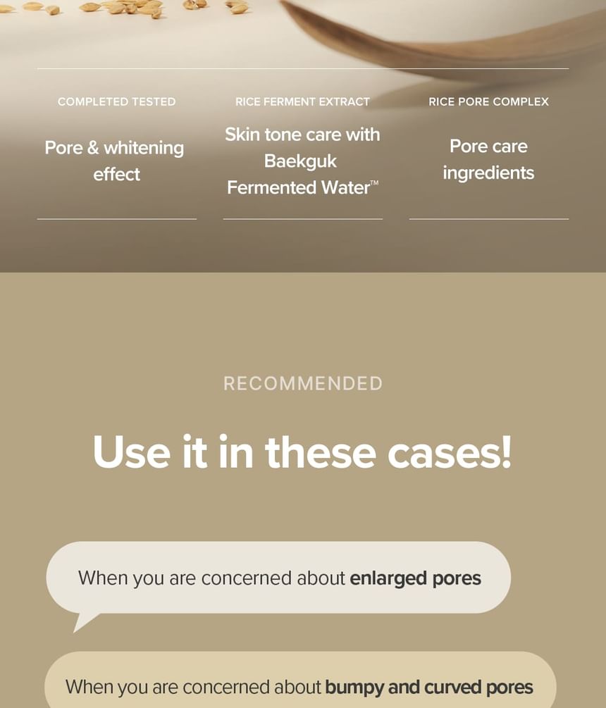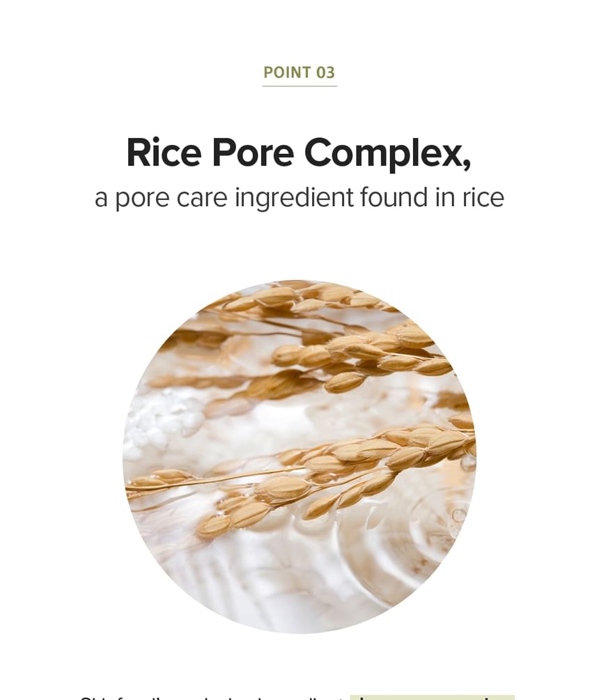 Enriched with Rice Pore Complex to improve skin elasticity and enlarged pores for clear skin.