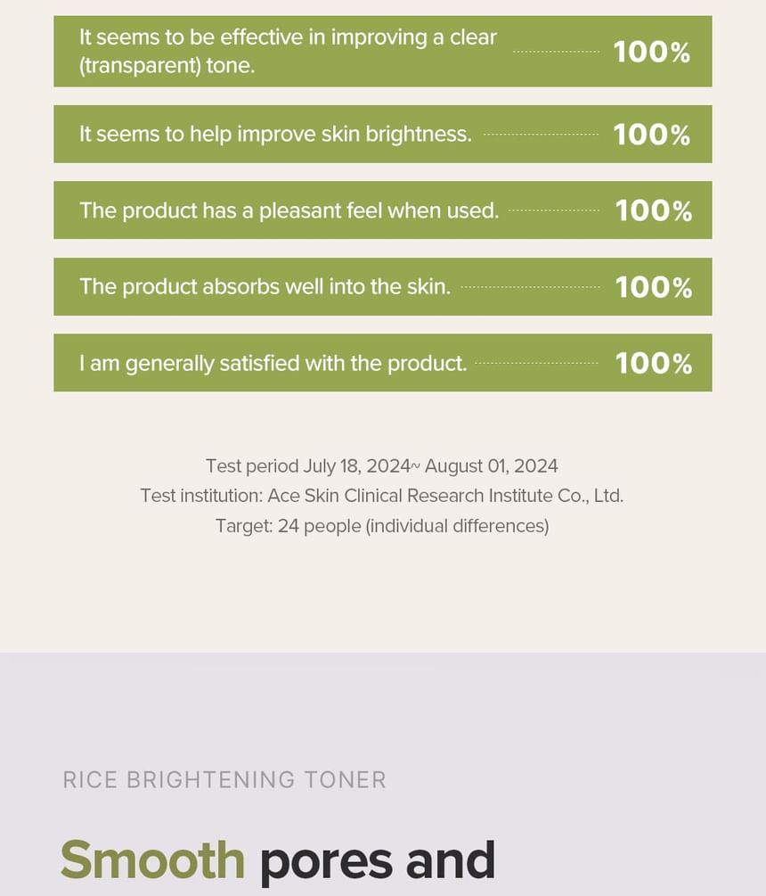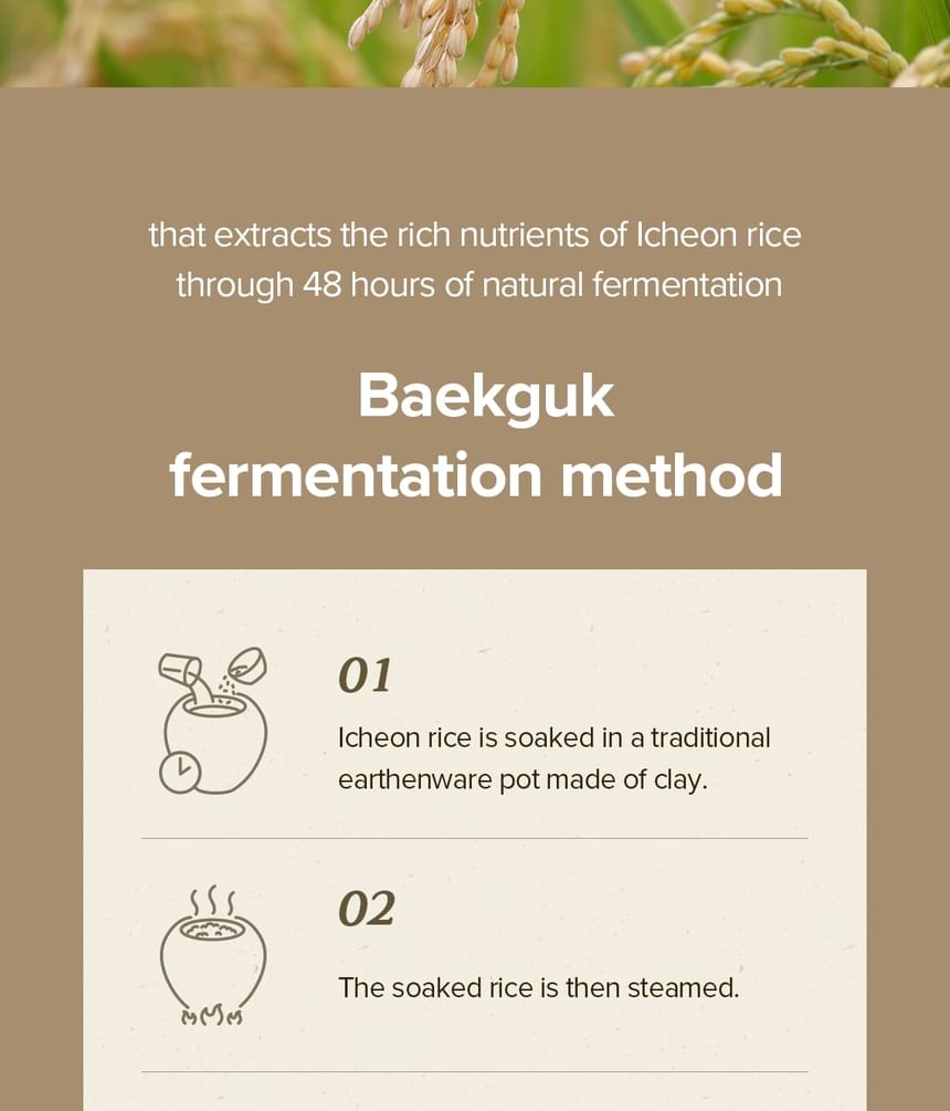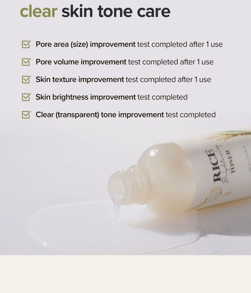 A rice water toner nourishes rough skin and pores for a clear and smooth complexion.