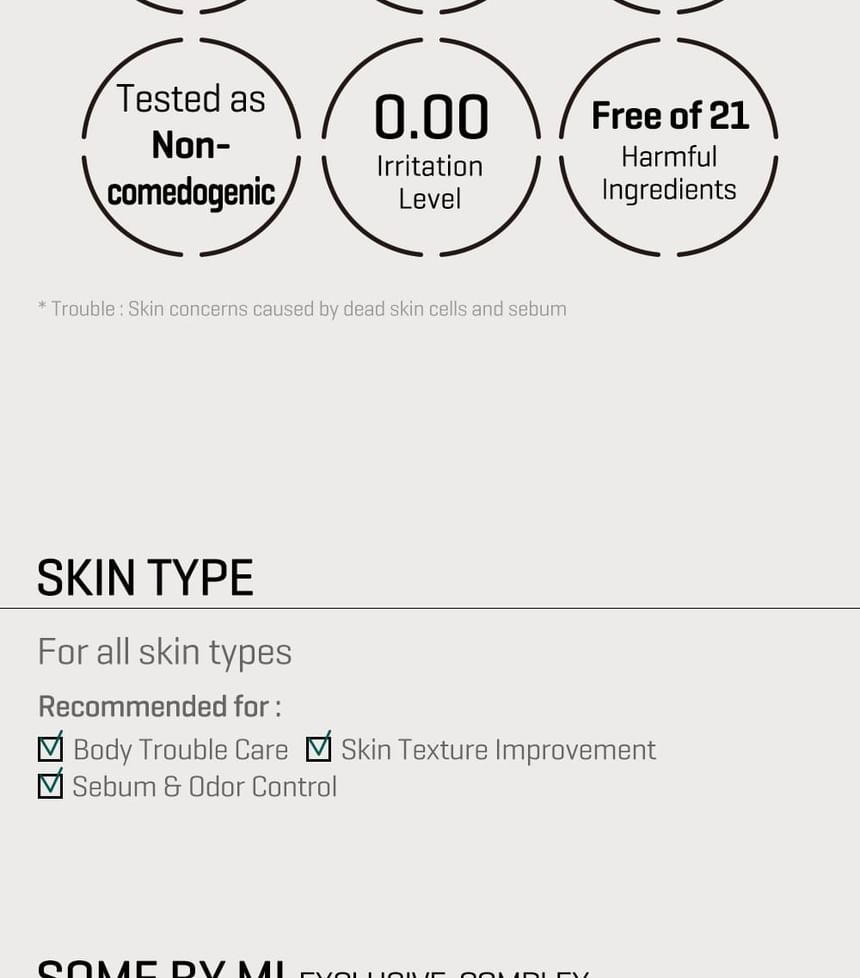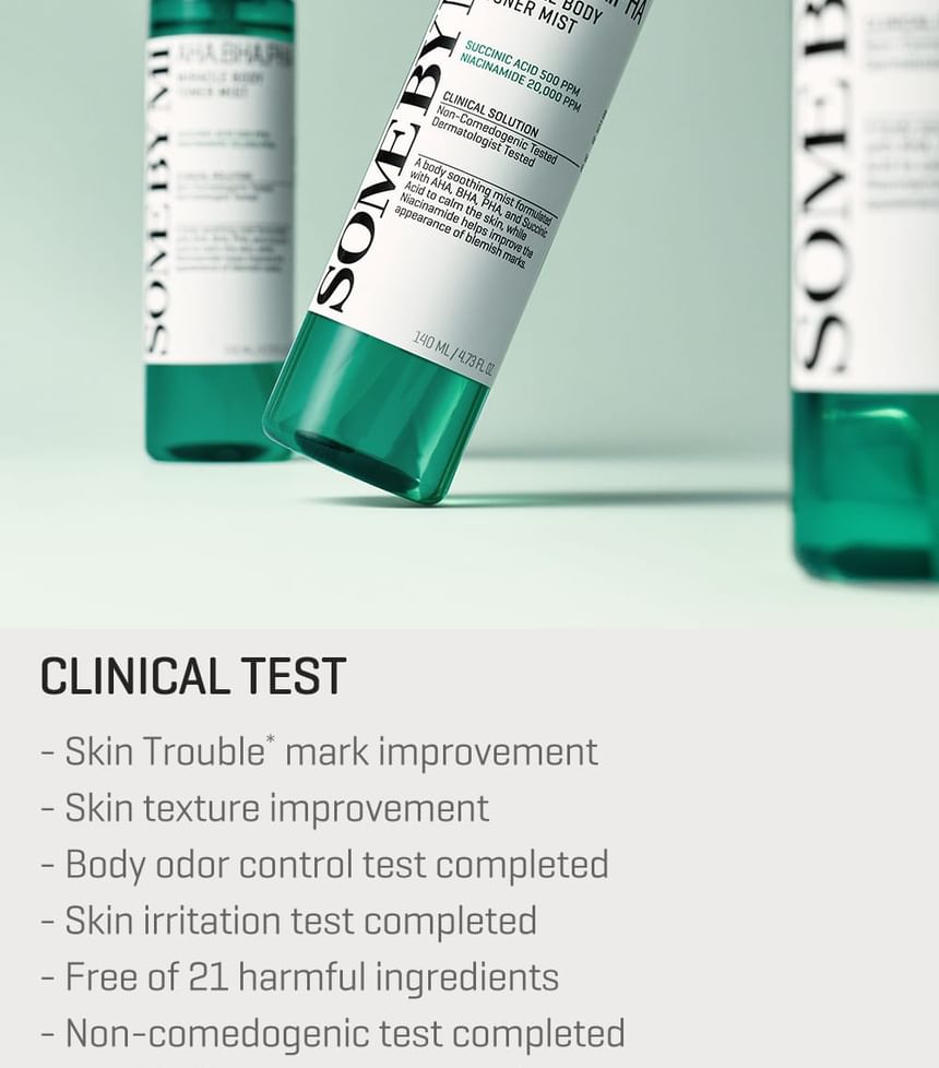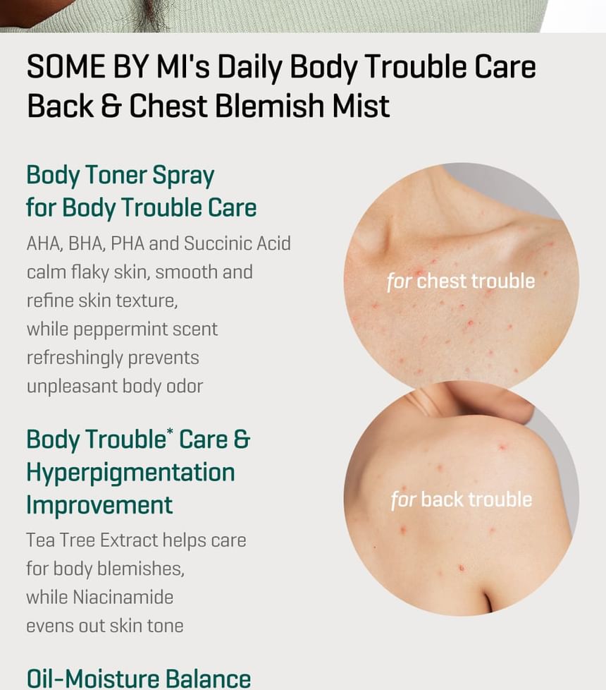 SOME BY MI AHA-BHA-PHA 30 Days Miracle Body Toner Mist – your companion for visibly cleaner and smoother skin on your body. It is a soothing body mist for everyday use ideal for acne-prone skin types.