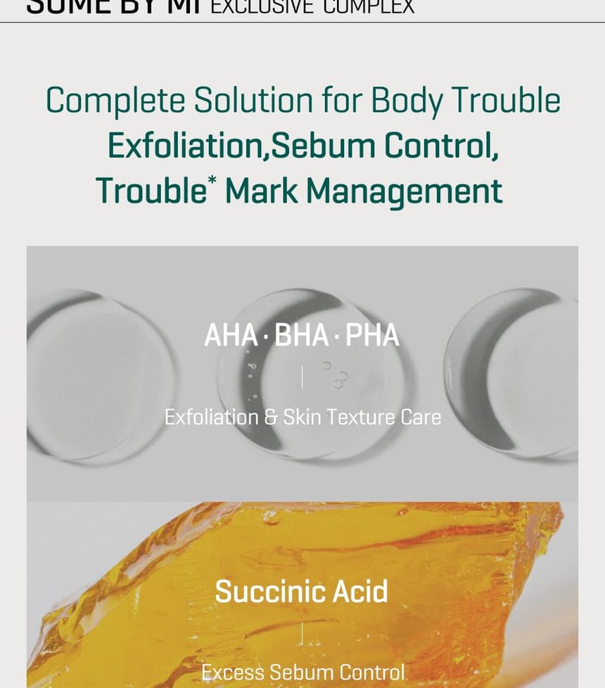 It gently exfoliates with AHA, BHA and PHA and succinic acid that work together to provide gentle exfoliation care to remove sebum and blackheads deep within the pores, exfoliate dead skin cells that had piled up on the skin layer,