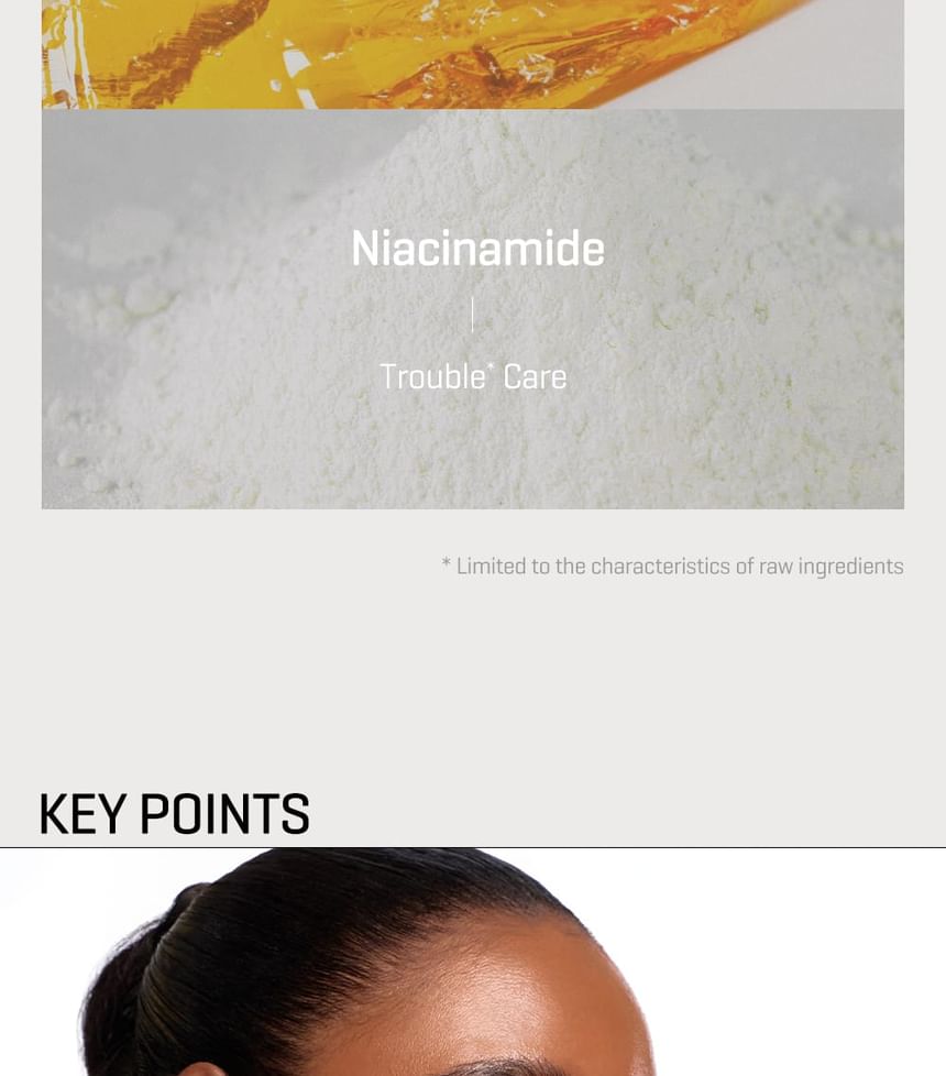 Niacinamide: helps improve skin tone and reduce the appearance of blemishes and imperfections.