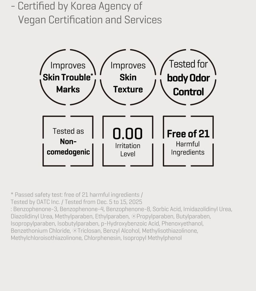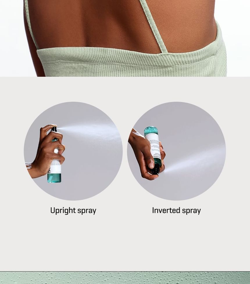 The spray format makes it easy to apply evenly, even on hard to reach areas, while remaining suitable for daily use on blemish prone body skin.