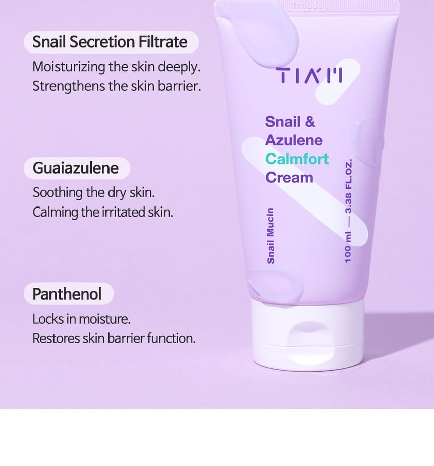 Radiant your Skin Care with the [Tiam] Snail & Azulene Calmfort Cream 100ml! we aim to provide you best korean products to take good care of your skin, including Skincare, Moisturizer, Cream. Hydra Cream online.
